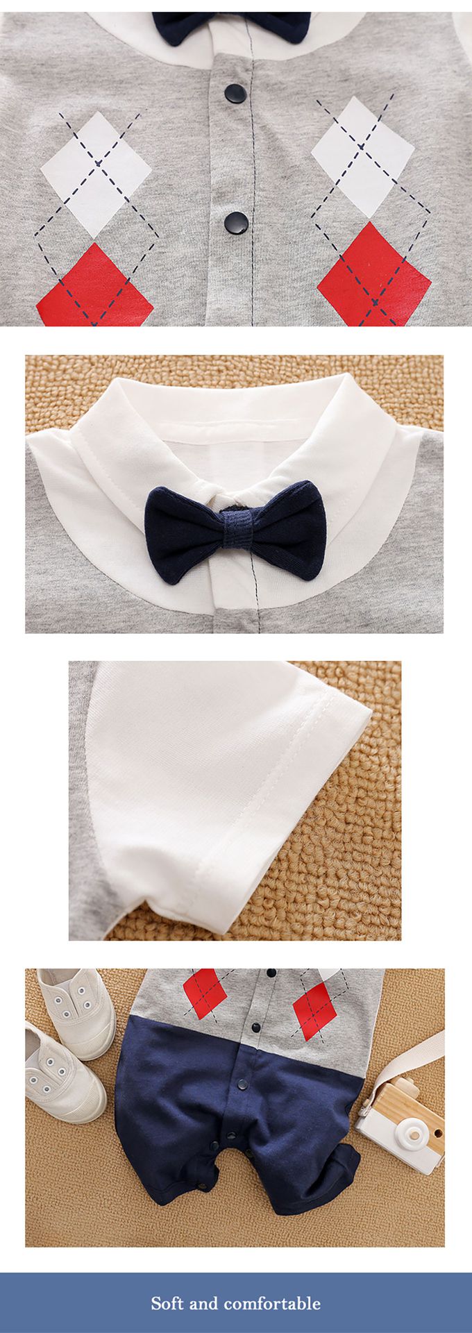 JoyNa - 短袖造型連身包屁衣 童裝 嬰兒連身衣 格子紳士-格子紳士款