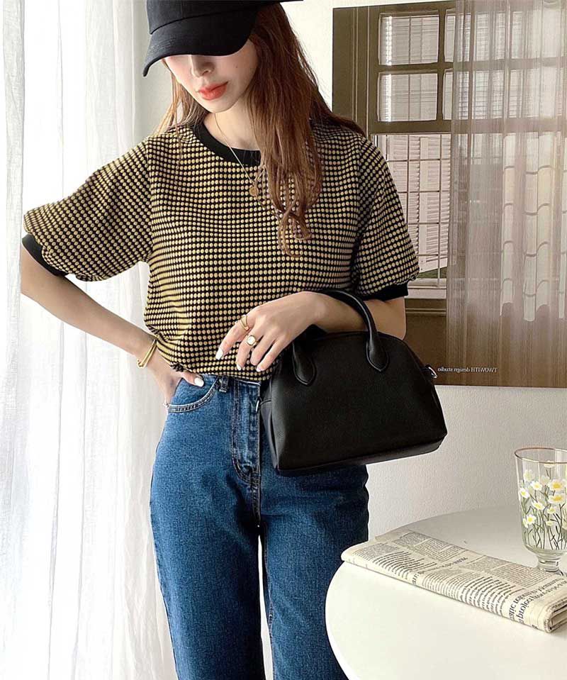 以棉T來說,是難得的不會過於軟趴趴的版型,微立領的領口也能修飾脖頸線條。