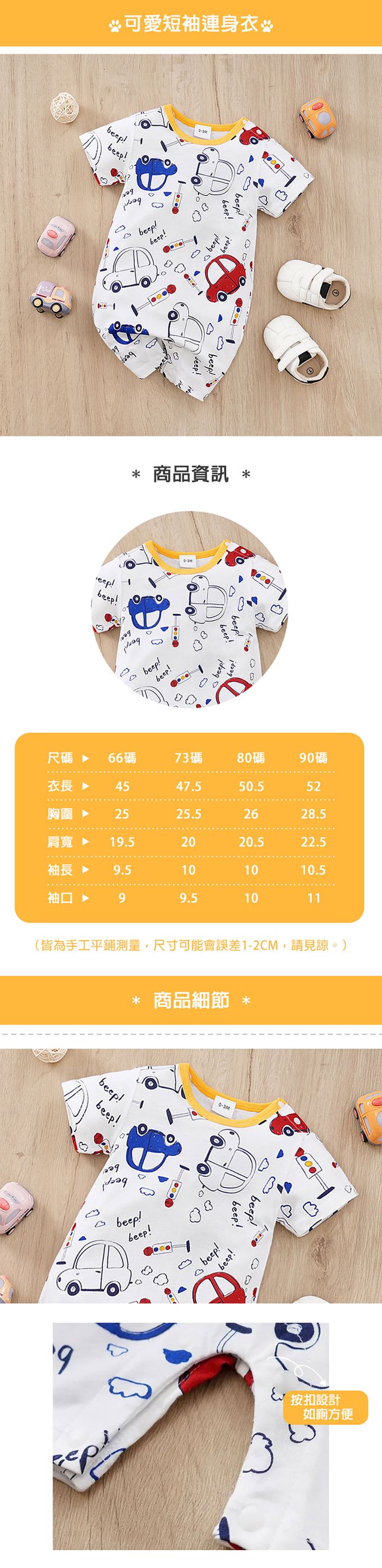 棉質短袖包屁衣 短袖嬰兒服-紅藍小汽車
