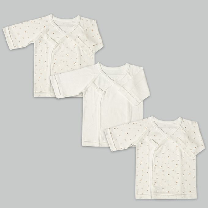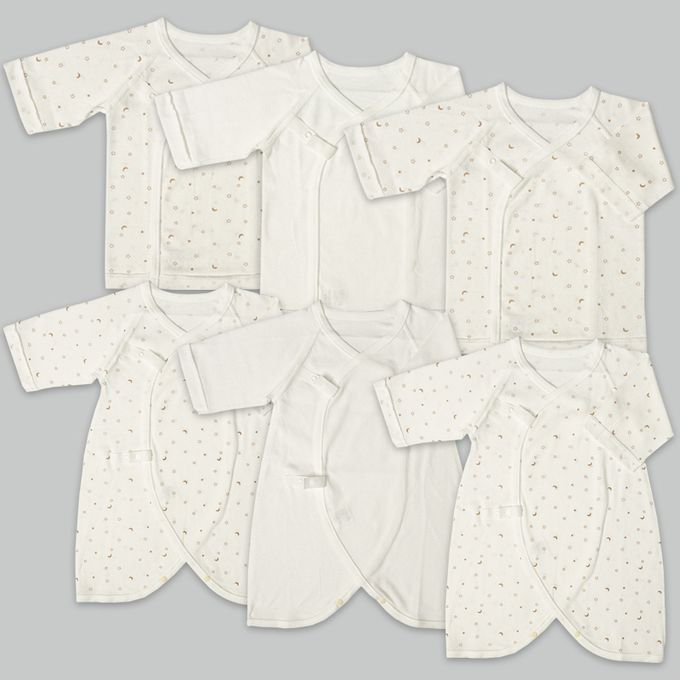 akachan honpo - 長袖新生兒內衣6件組-按扣款 動物-象牙白色 (50~60cm)