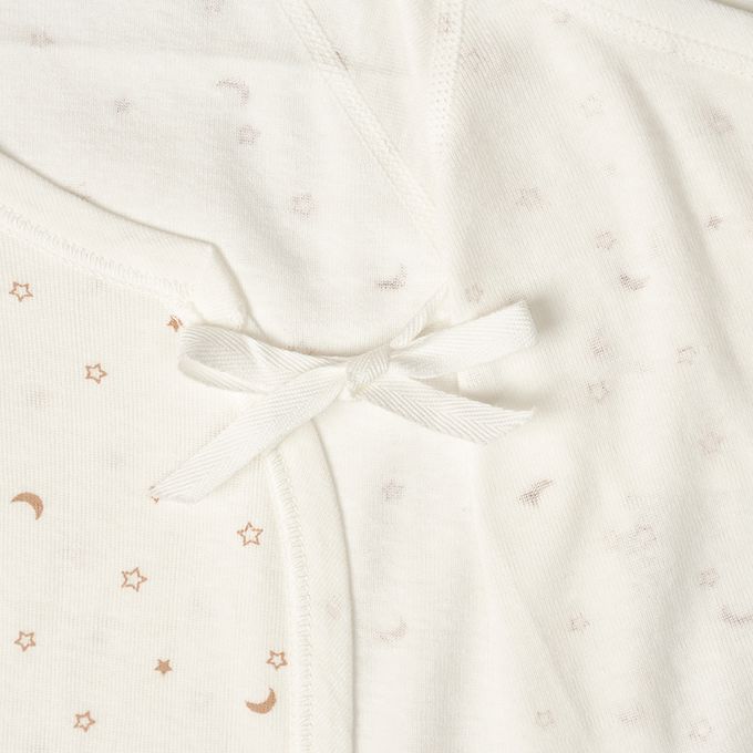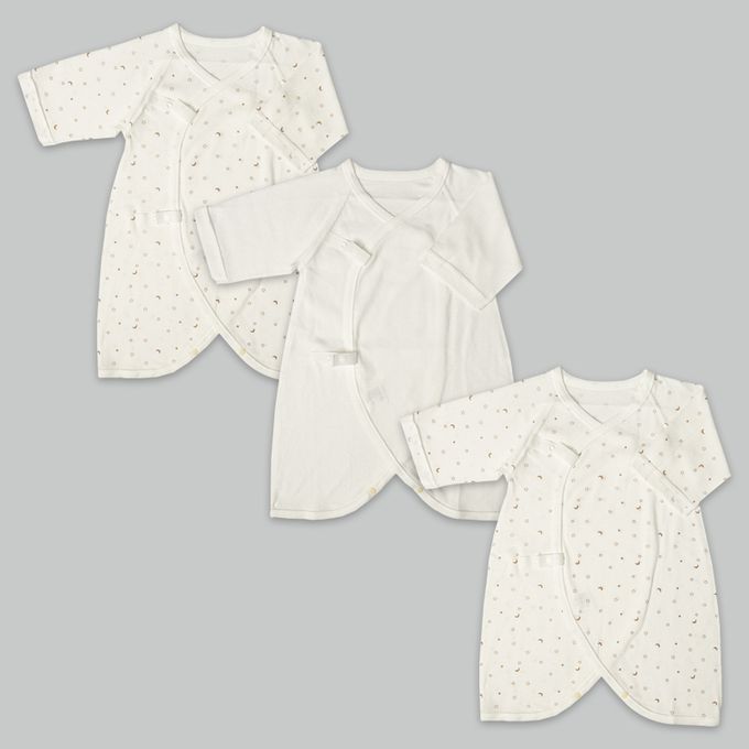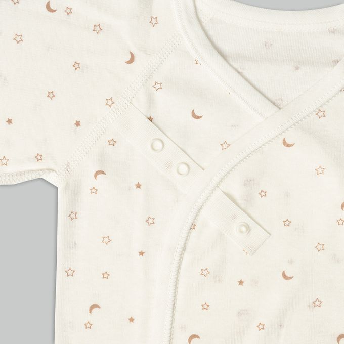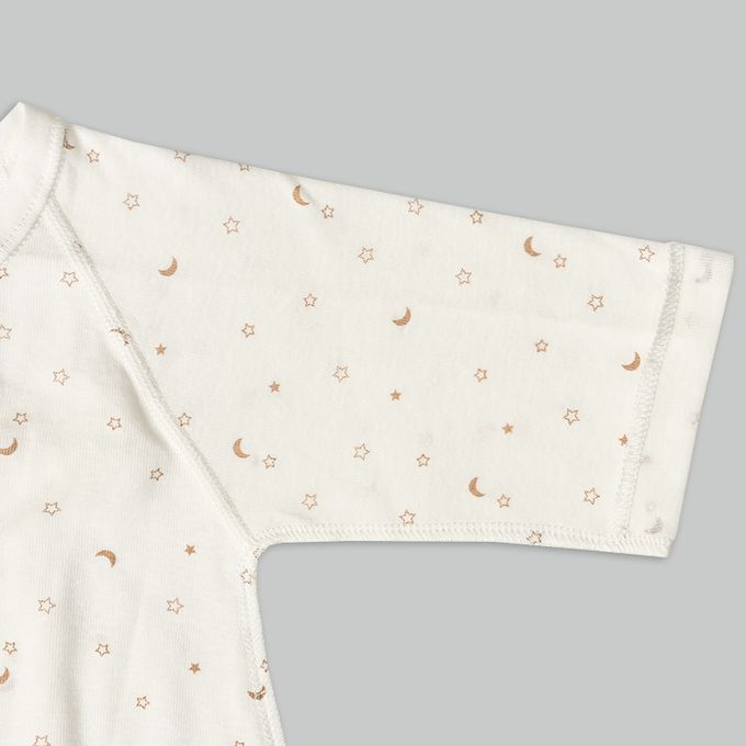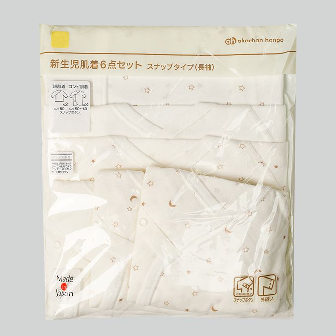 長袖新生兒內衣6件組-按扣款 星空-淺卡其色 (50~60cm)-日本製
