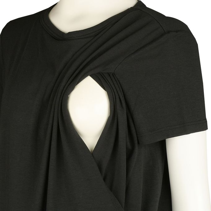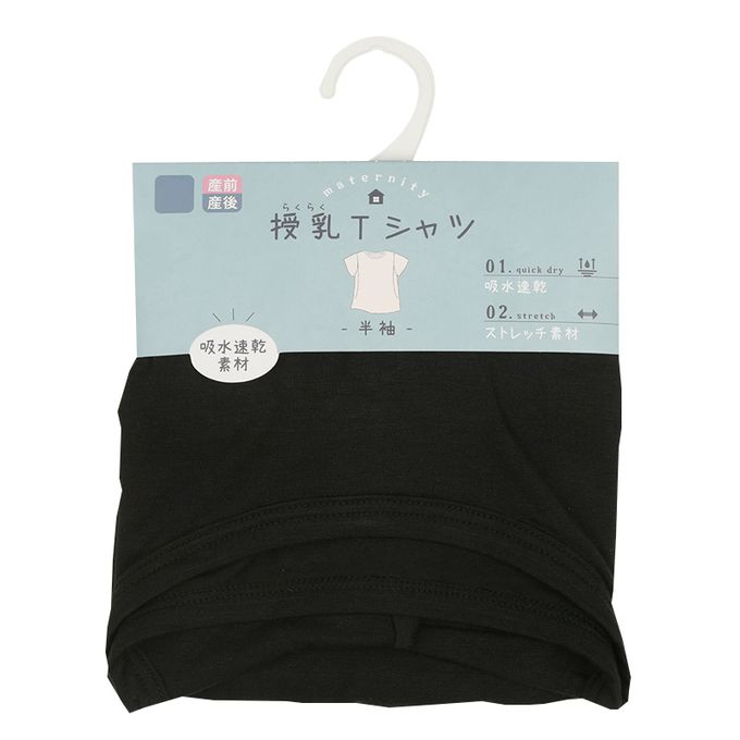 akachan honpo - 短袖哺乳T恤-吸水速乾-黑色