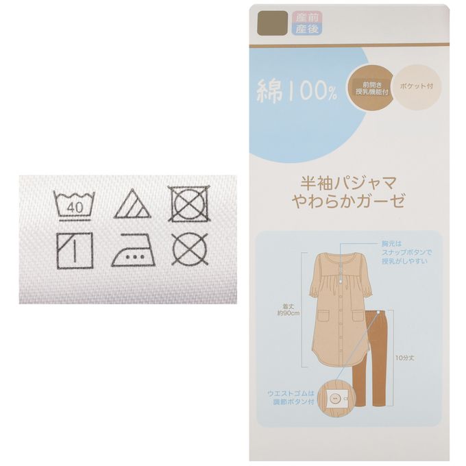 詳細尺寸:(約・ cm)=[M~L](上衣) 胸圍86~101 衣長90 袖長22 肩寬42 (褲子) 腰圍64~77 前上襠長36 下襠長67 [L~LL](上衣) 胸圍93~108 衣長90 袖長22 肩寬44 (褲子) 腰圍69~85 前上襠長37 下襠長66[ 對象期間] 産前~産後[ 包裝尺寸] H33×W29
