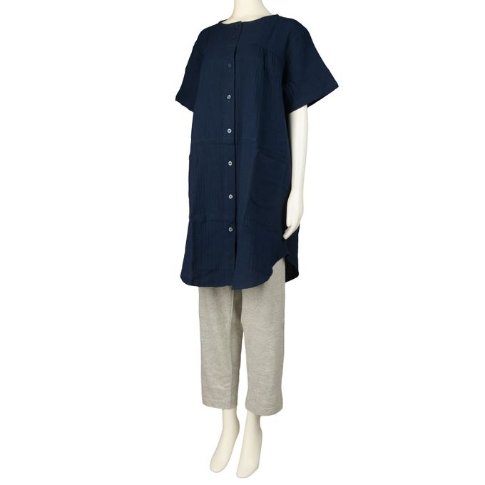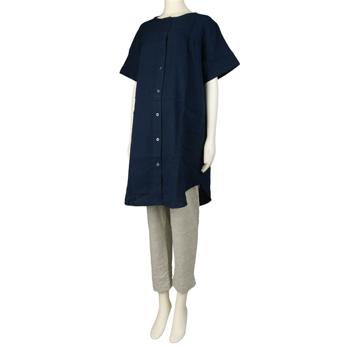 短袖家居服-柔軟棉紗-深藍色