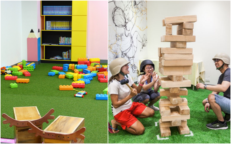 還有巨型的疊疊樂、大積木等,平常家裡空間太小玩不到的大型玩具,孩子們也能在這邊玩到不想回家~