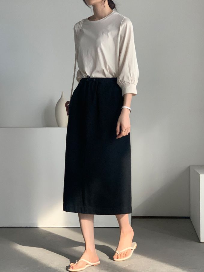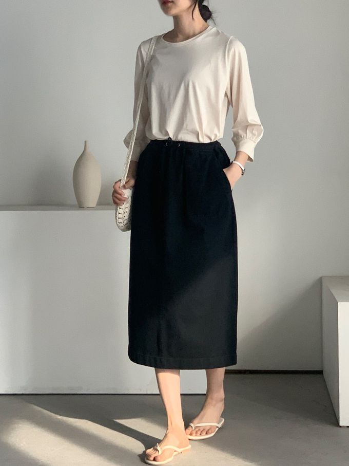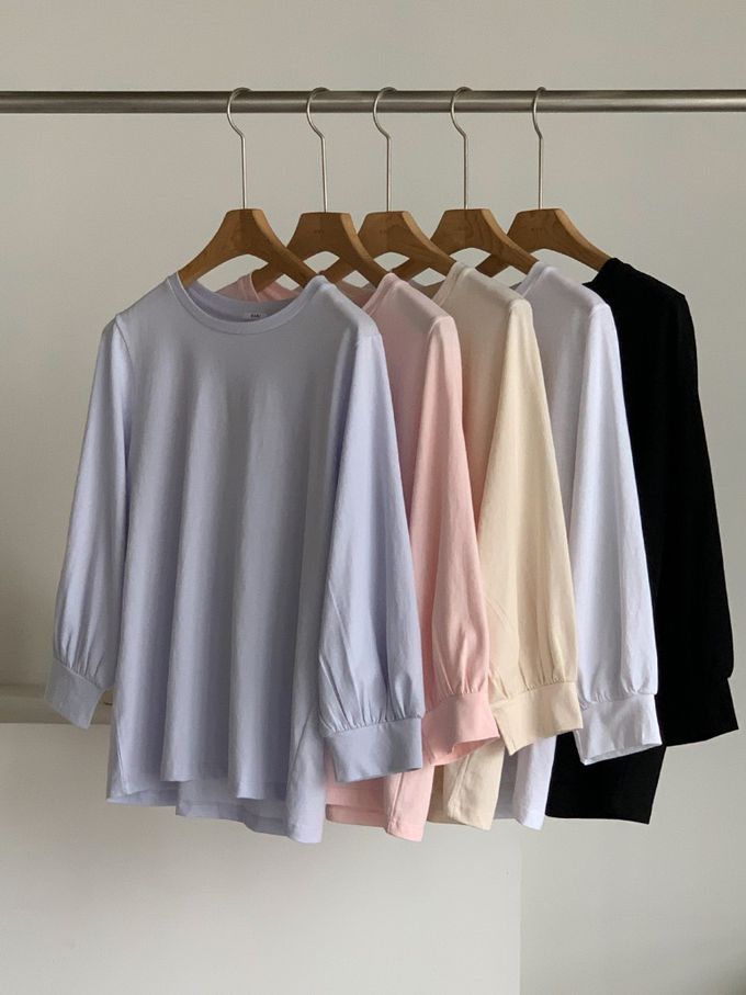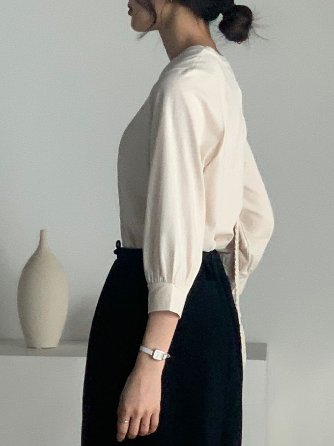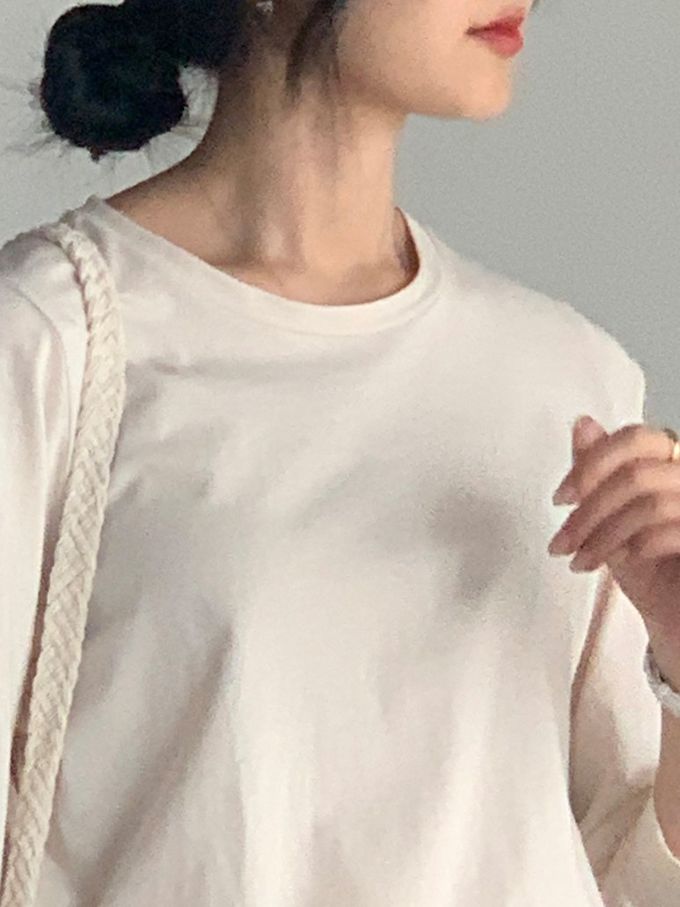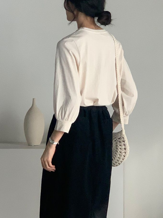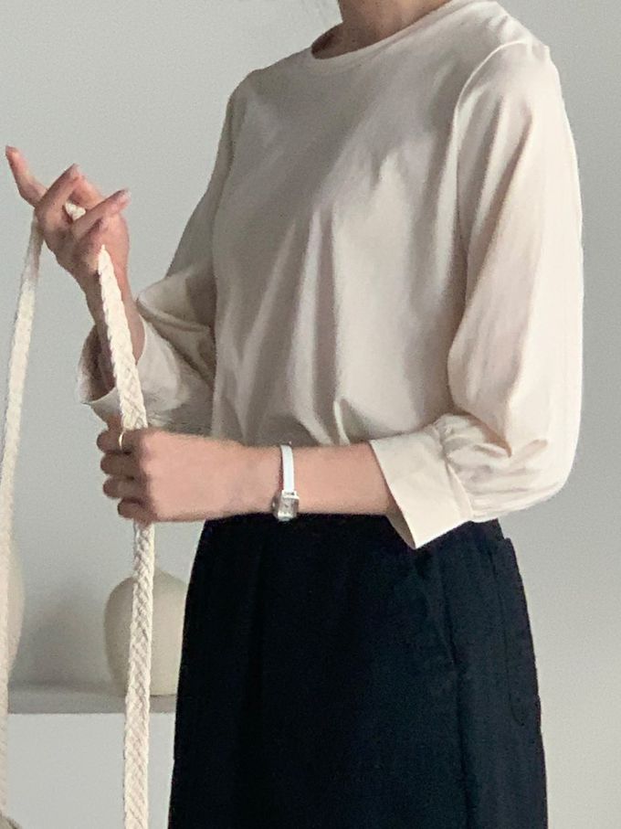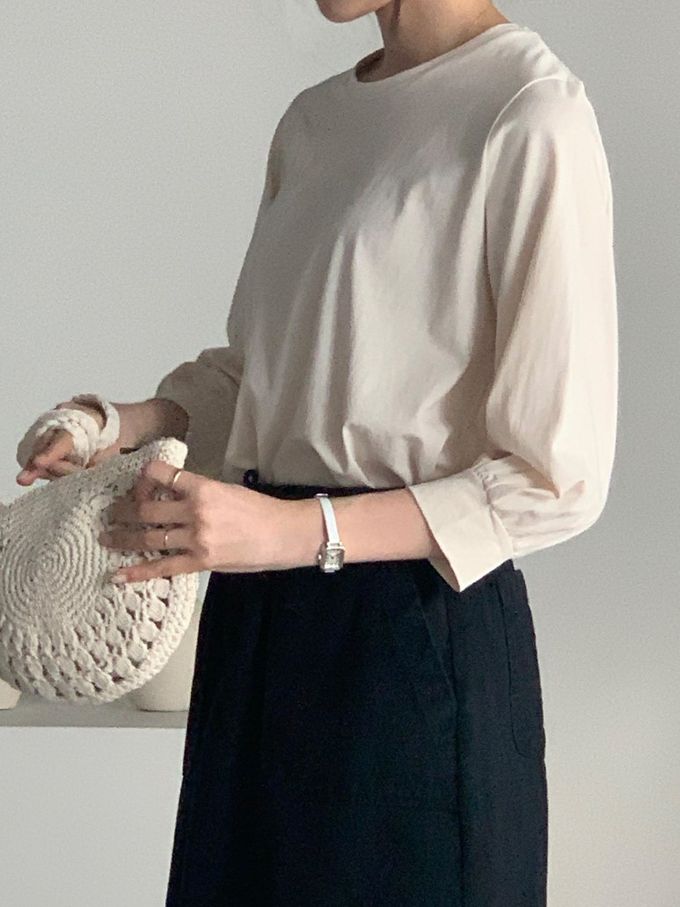 韓國女裝連線 - 極簡好搭七分袖上衣-米杏 (FREE)