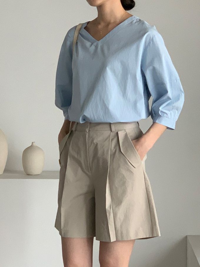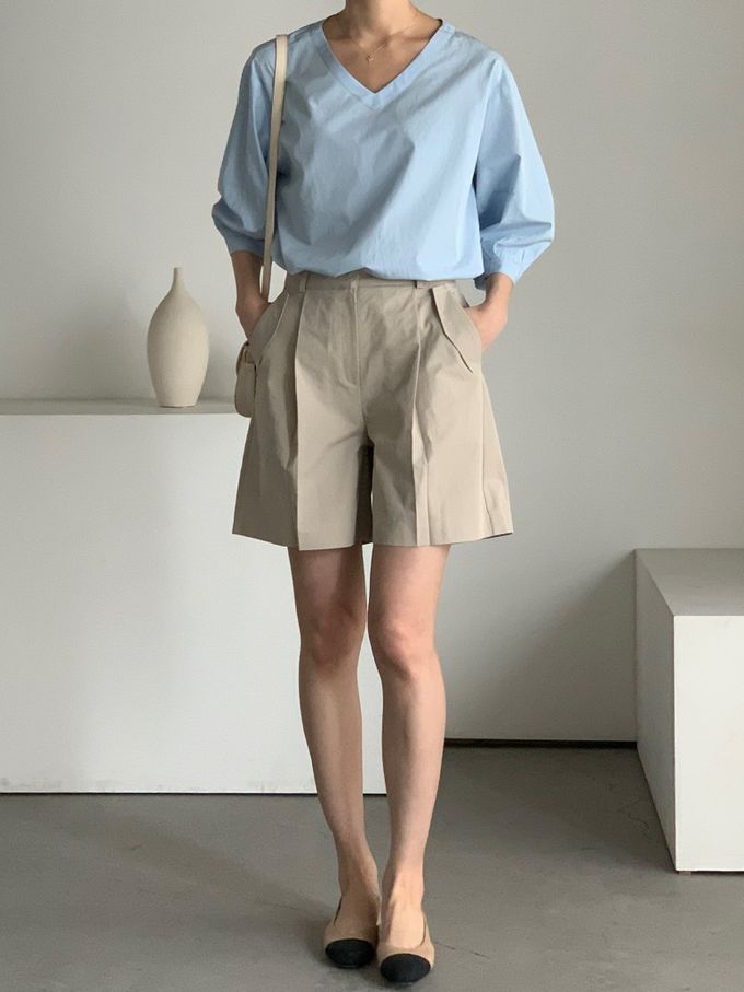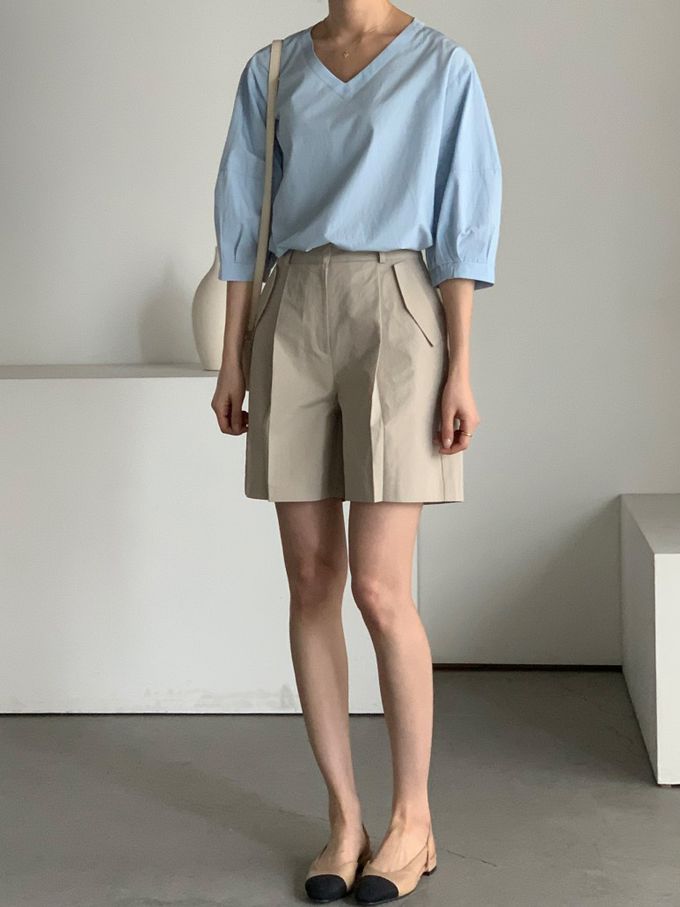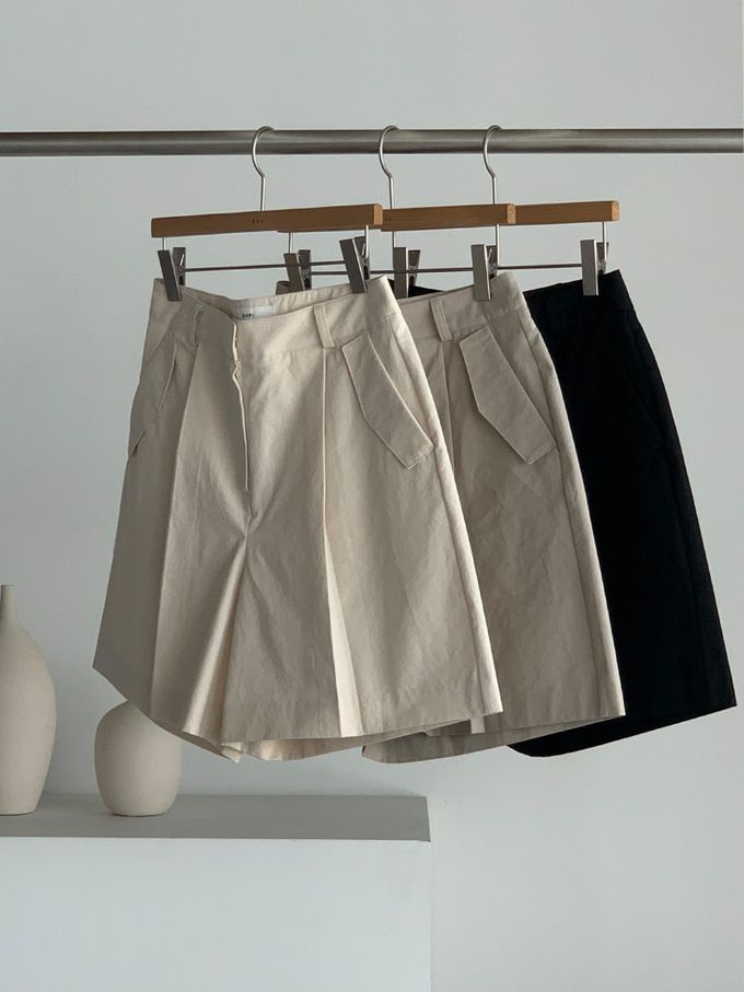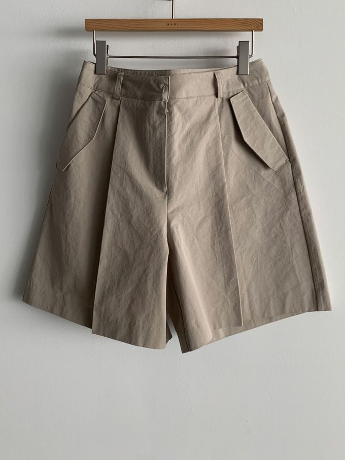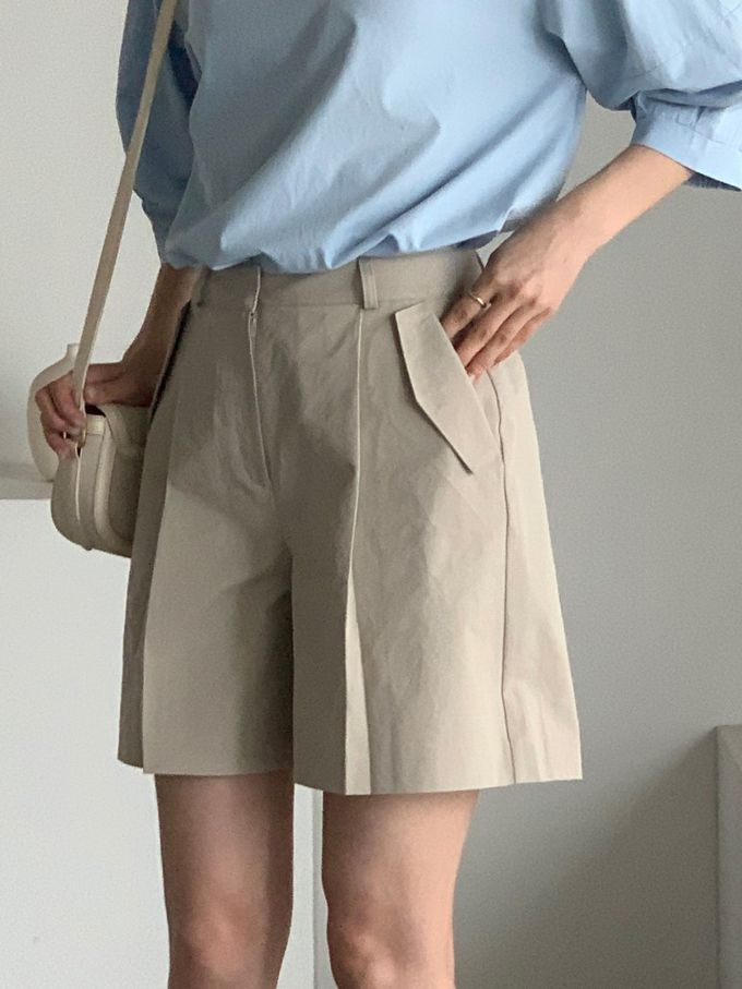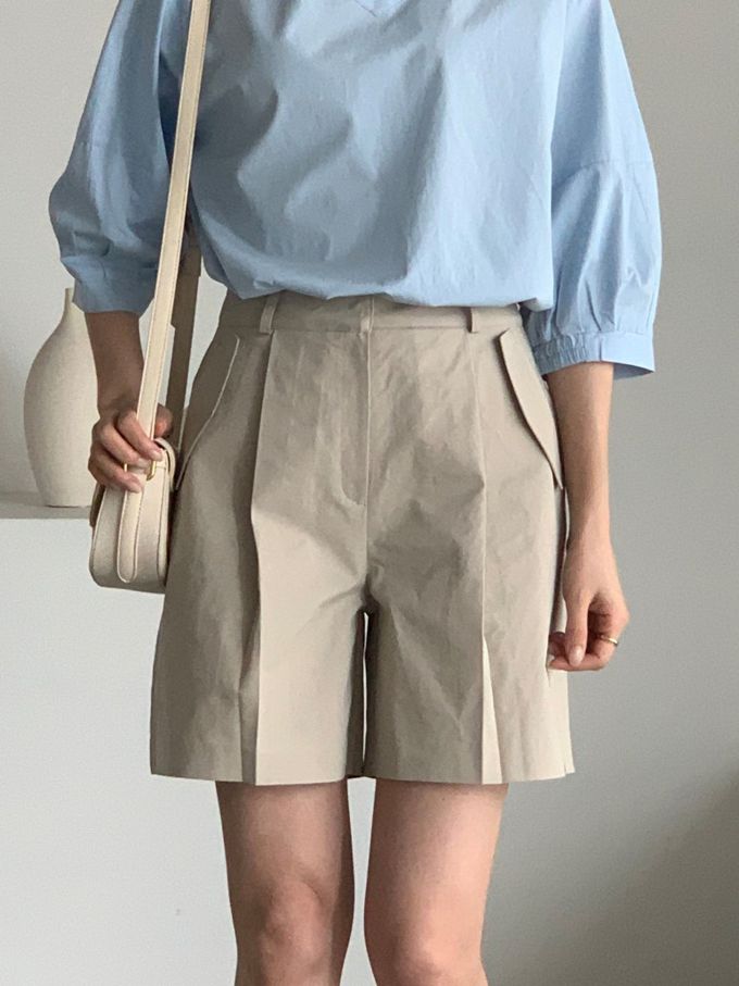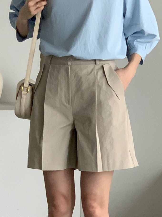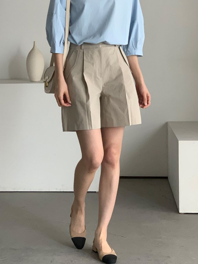 韓國女裝連線 - 打褶感西裝短褲-卡其