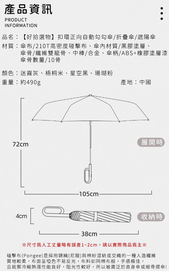 品名:扣環正向自動勾勾傘/折疊傘/遮陽傘