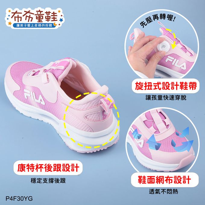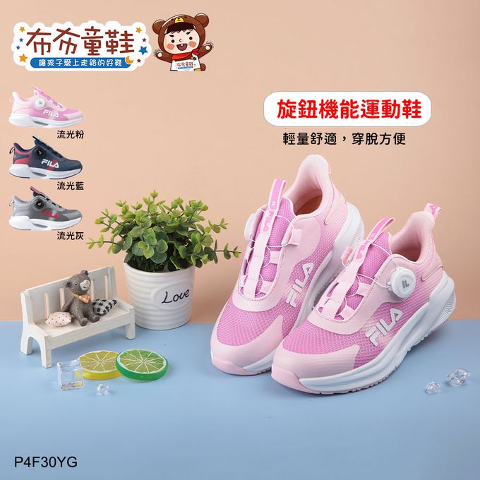 FILA旋鈕鞋帶流光灰兒童機能運動鞋