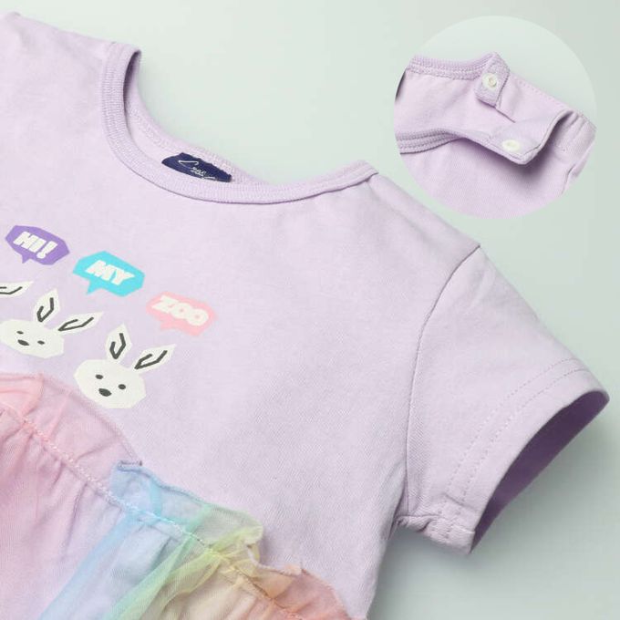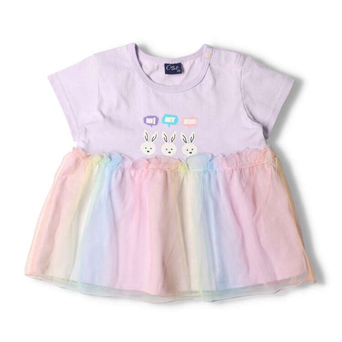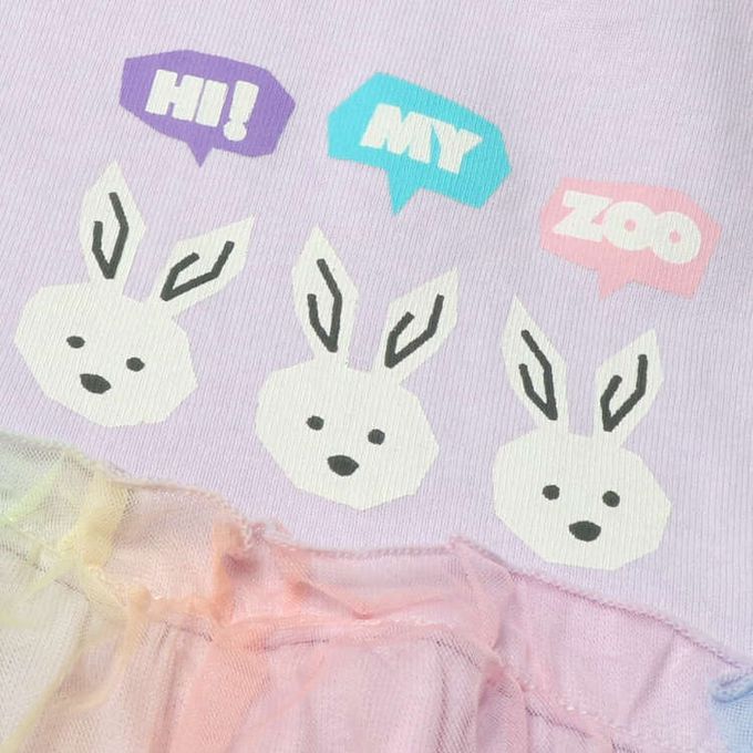 akachan honpo - T恤-HI ! MY ZOO 薄紗拼接-紫色