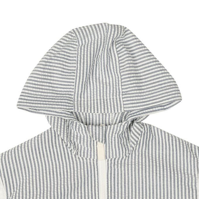由涼爽的泡泡紗所製成的連帽外套