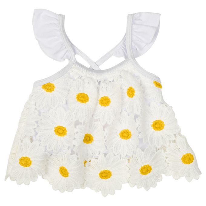 兩件式泳衣-小花 蕾絲-白色