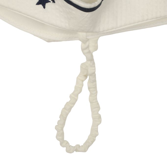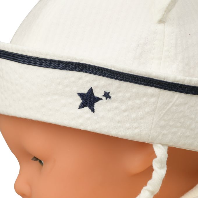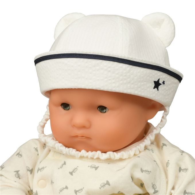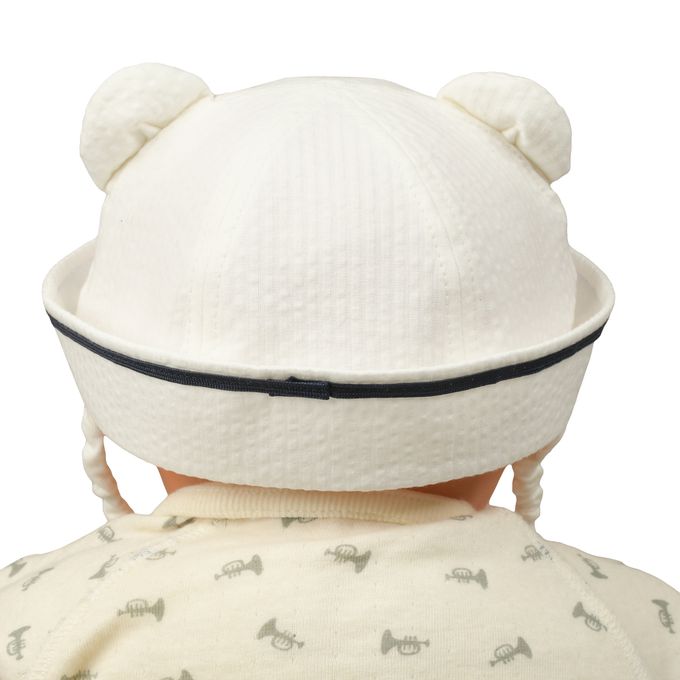 下巴的鬆緊帶用棉布包覆住,因此不會刺激小寶寶的肌膚。