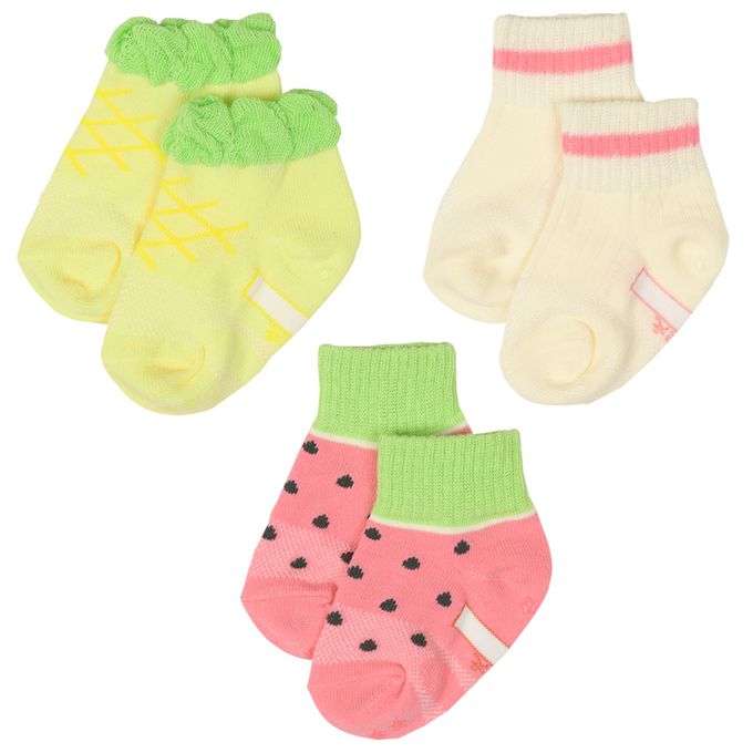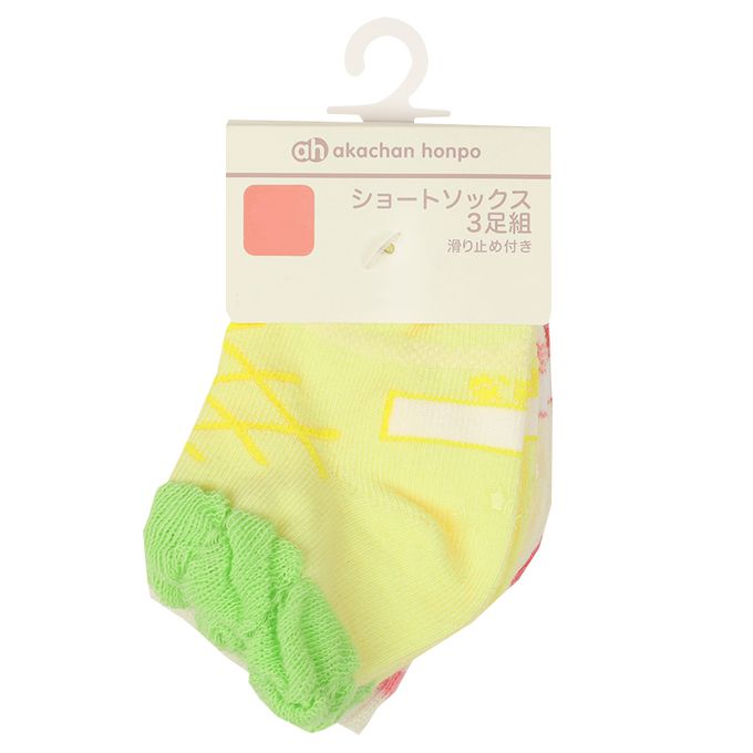 akachan honpo - 短襪3雙組-水果-黃色 (9~14cm)