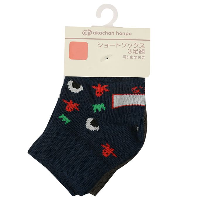 akachan honpo - 短襪3雙組-汽車-深藍色 (9~14cm)