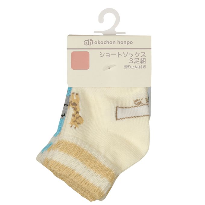 akachan honpo - 短襪3雙組-小狗-淺卡其色 (9~14cm)