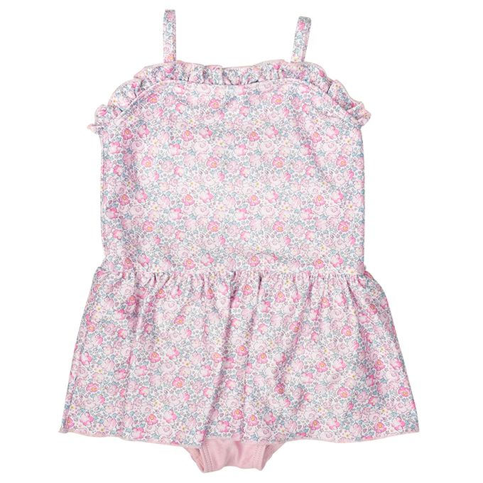 akachan honpo - 連身泳衣-小花&直條紋-淺藍色