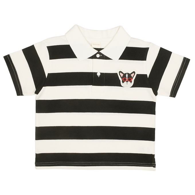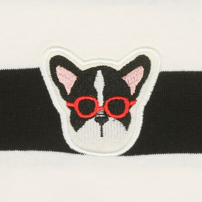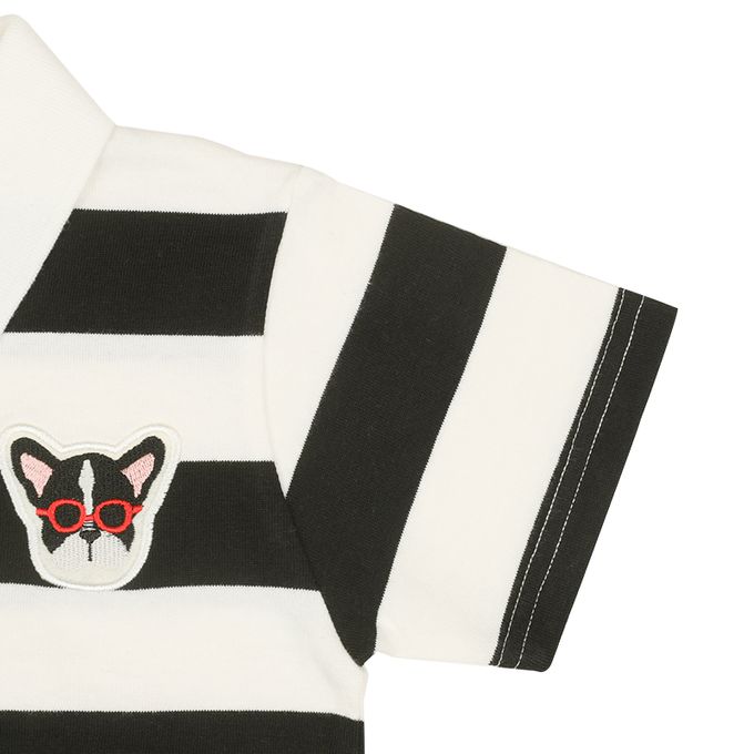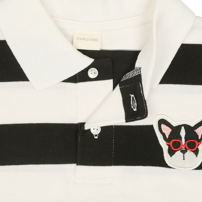 有動物繡片的粗橫紋簡約POLO衫