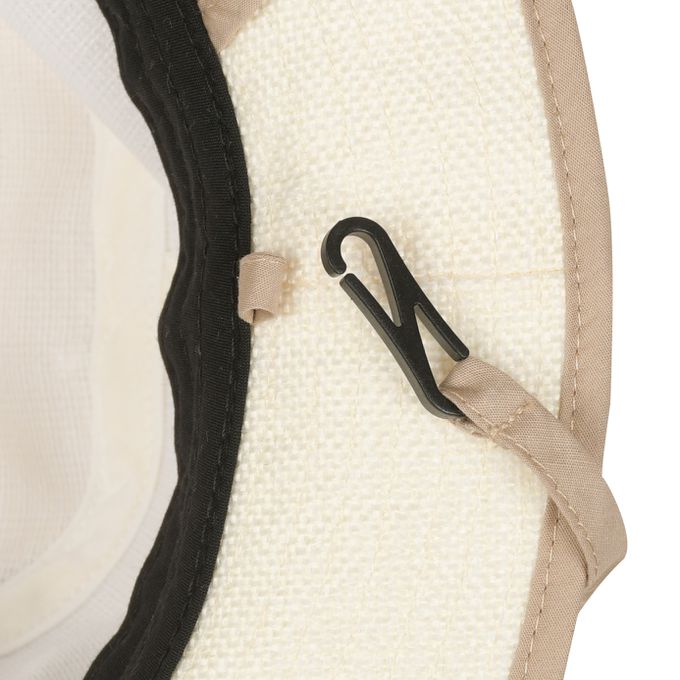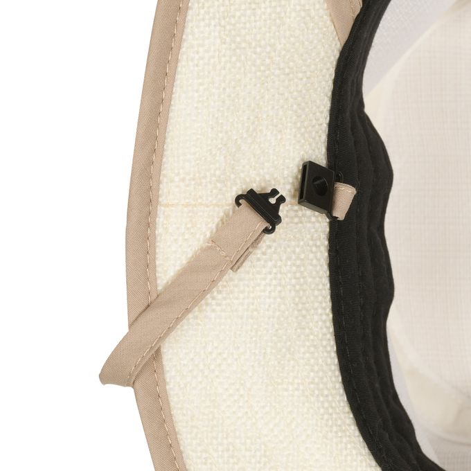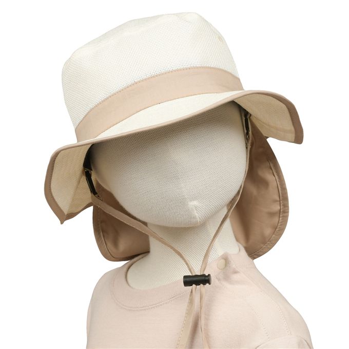 為防止被風等吹落,下巴有固定繩。下巴的固定繩可拆。