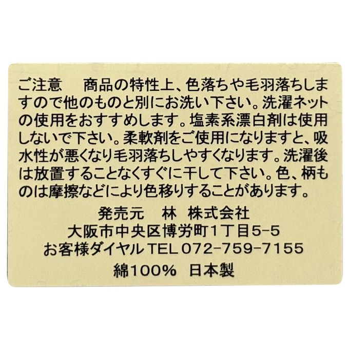 注意事項:●標示內容遵照台灣法規之規定。●因有可能掉色,洗滌後也請盡速脫水晾乾。●請使用洗衣網。●請勿使用柔軟劑。●洗滌後請盡快將形狀調整平整後晾乾。