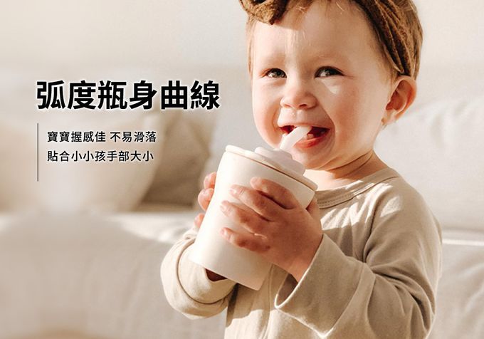 貼心的曲線杯身設計,適合寶寶雙手捧握水杯