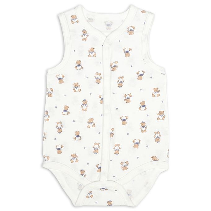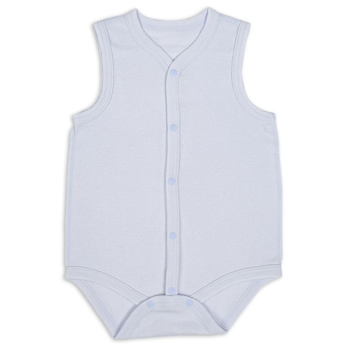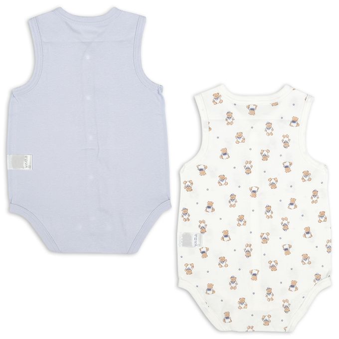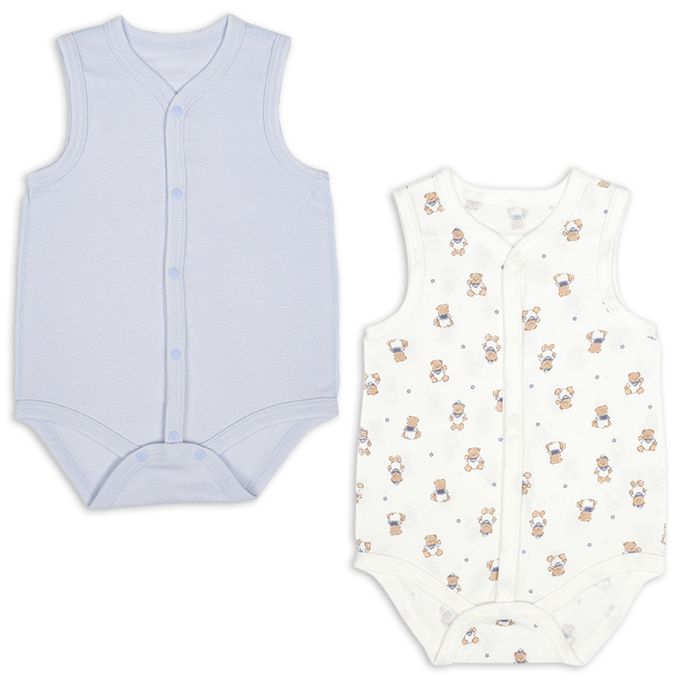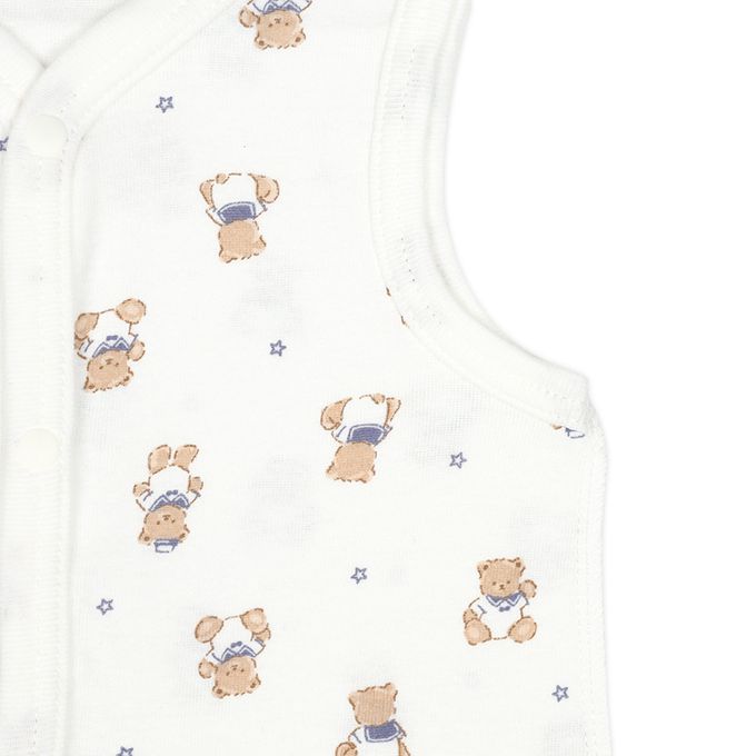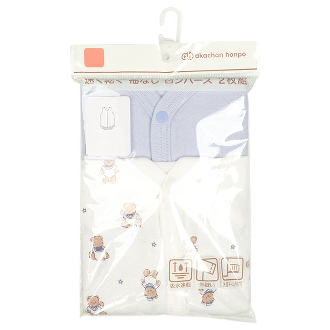 無袖速乾包屁衣2件組-前開式 小熊 星星-淺藍色