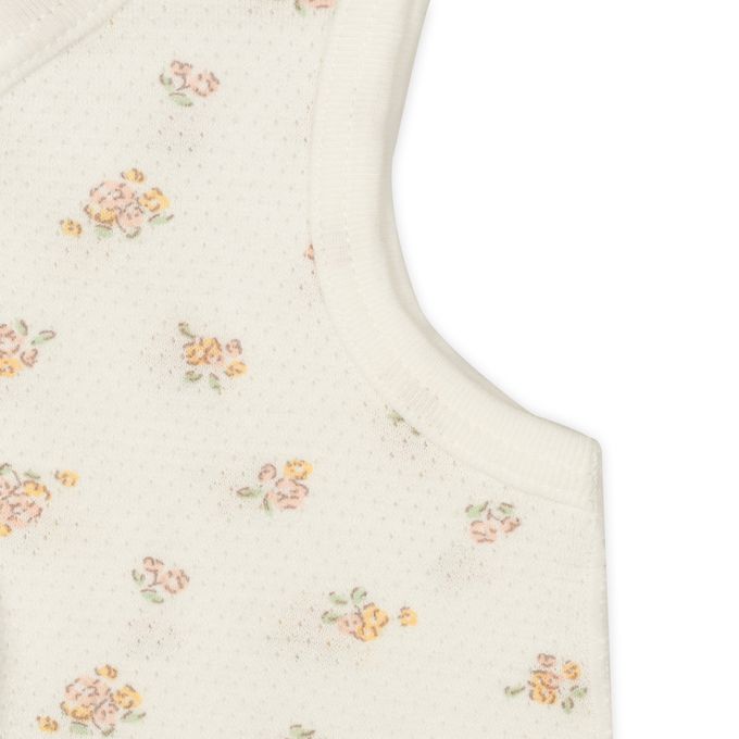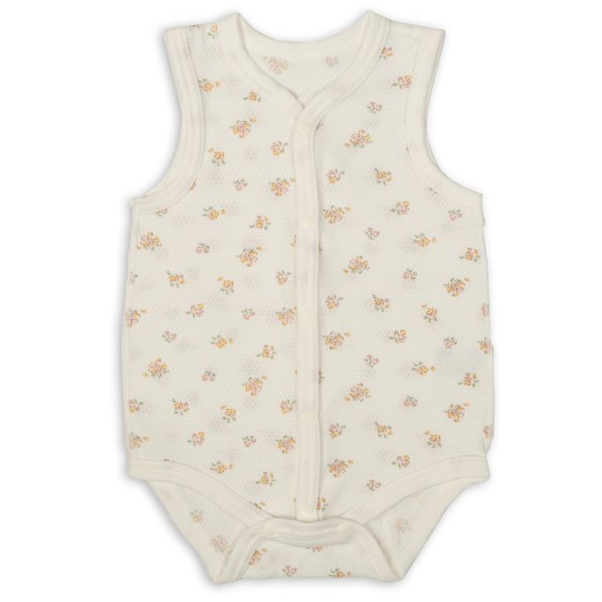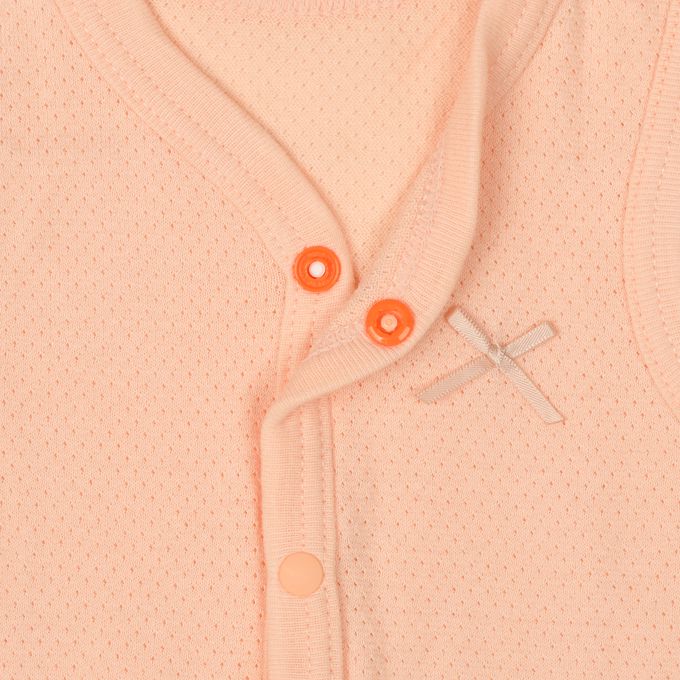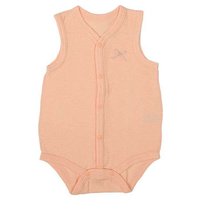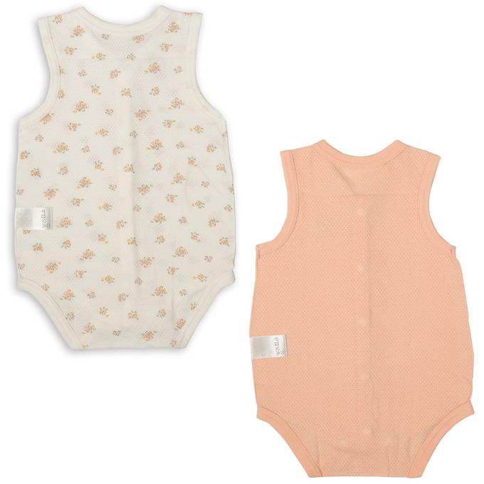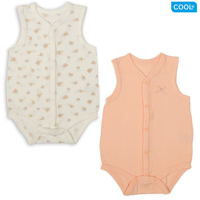 無袖網眼包屁衣2件組-前開式 小花-橘色