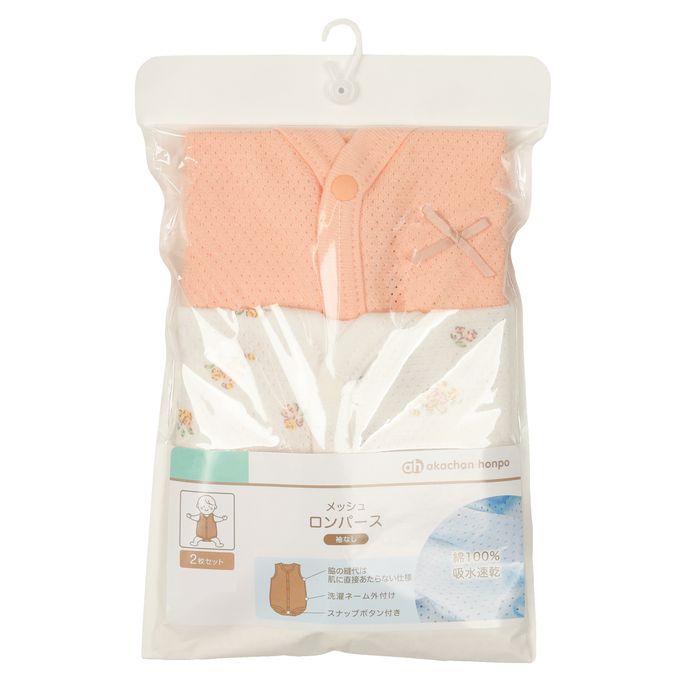 akachan honpo - 無袖網眼包屁衣2件組-前開式 小花-橘色