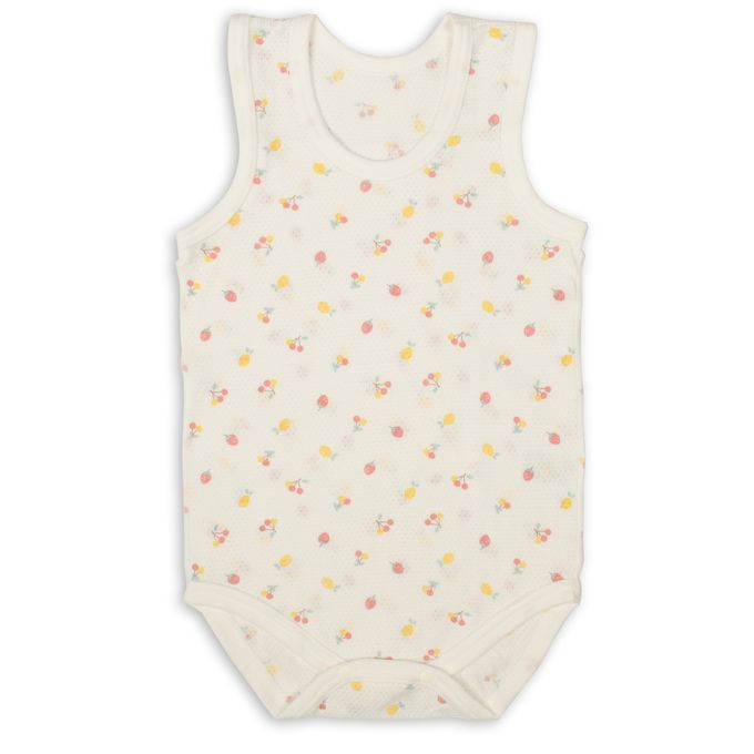 無袖網眼包屁衣2件組-套頭式 水果-黃色