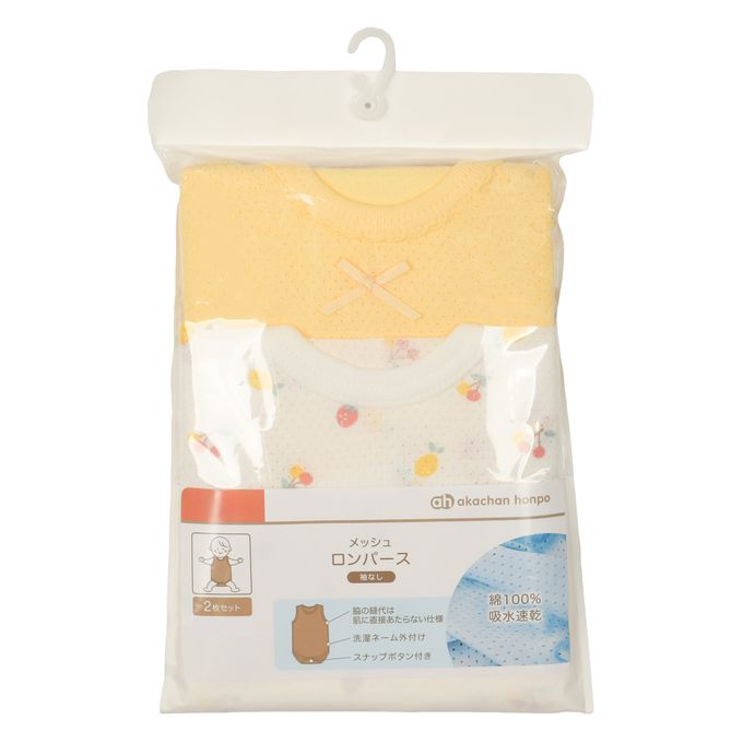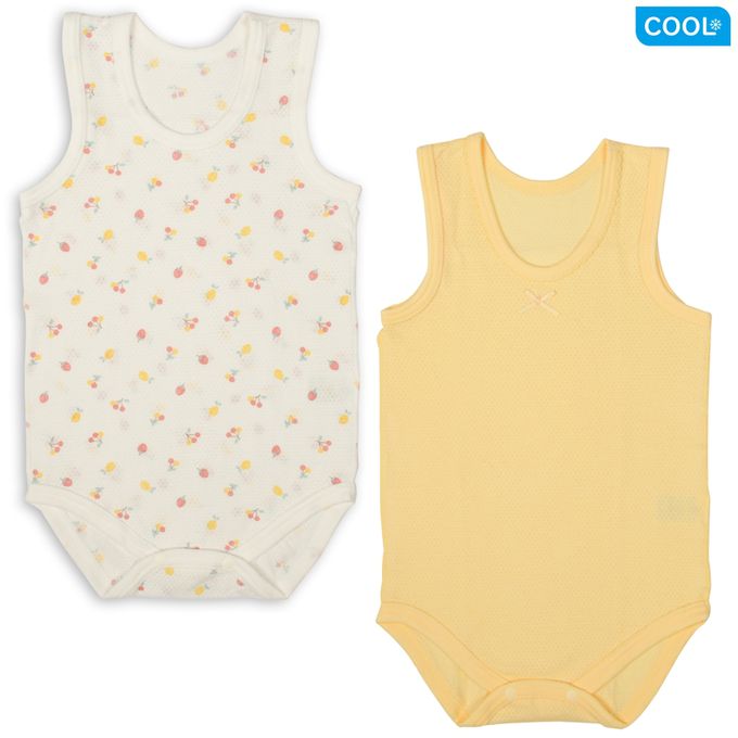 akachan honpo - 無袖網眼包屁衣2件組-套頭式 水果-黃色