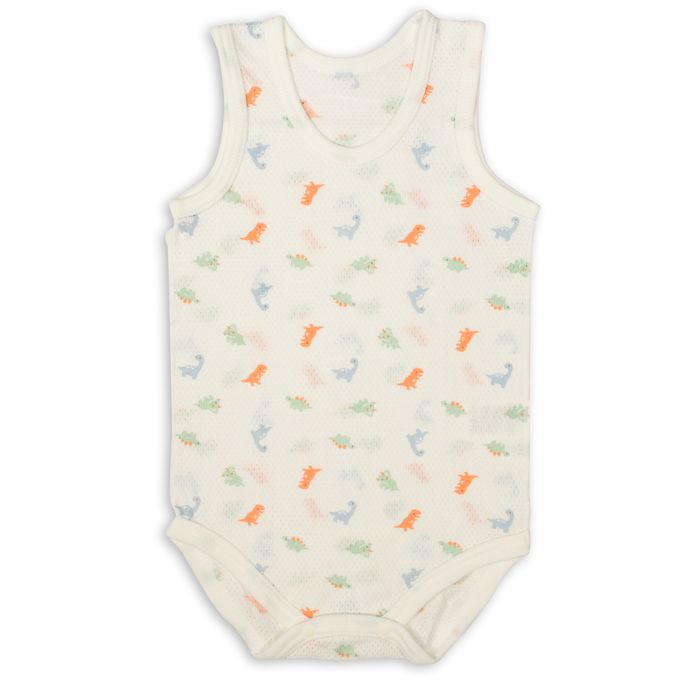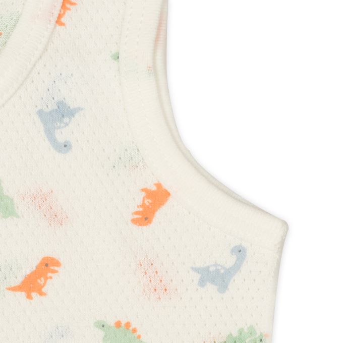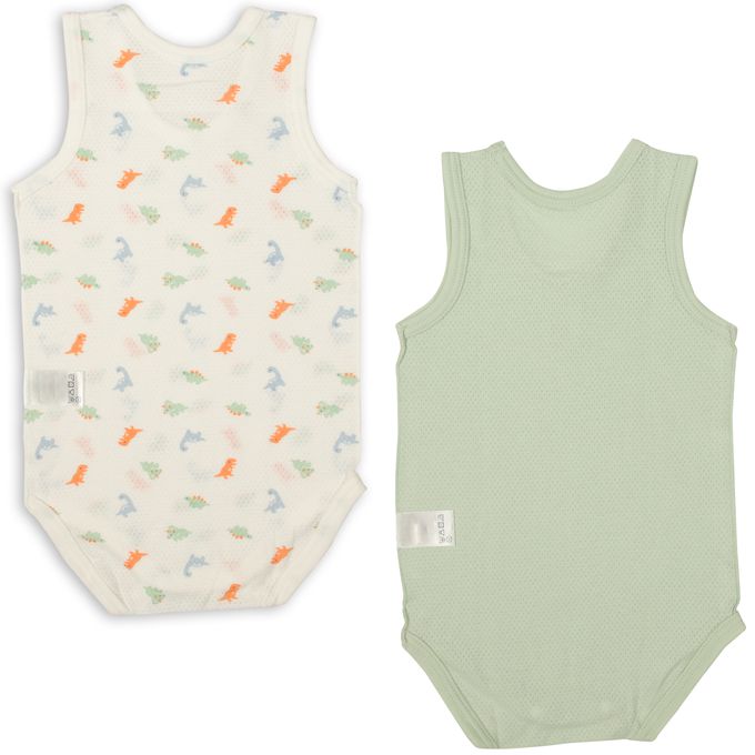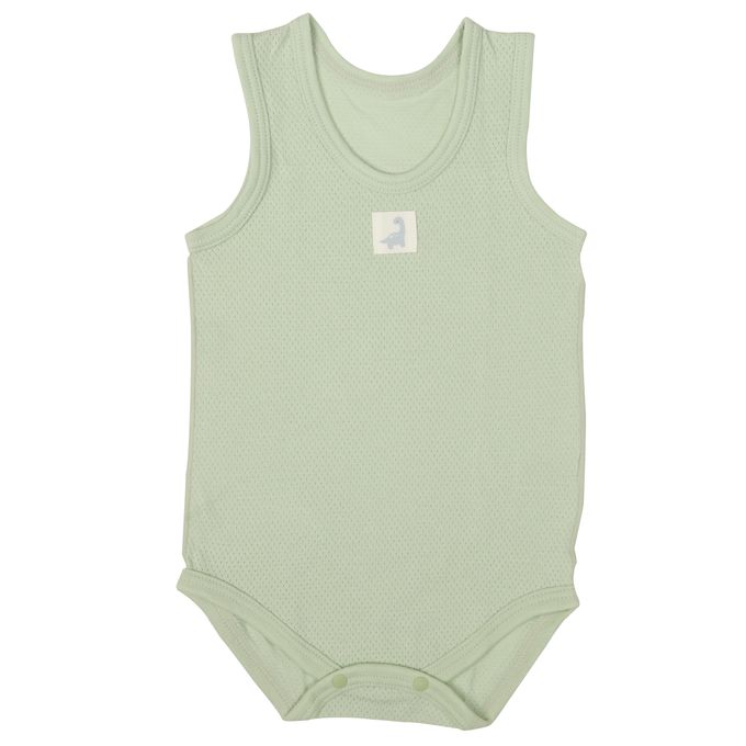 無袖網眼包屁衣2件組-套頭式 恐龍-綠色