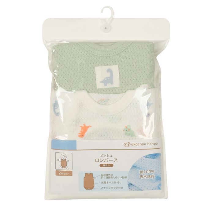 akachan honpo - 無袖網眼包屁衣2件組-套頭式 玩具-象牙白色