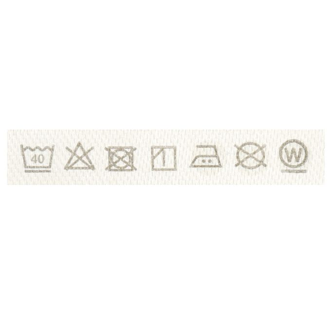 注意事項:●標示內容遵照台灣法規之規定。●請使用洗衣網。●請使用不含螢光增白劑的洗劑。●請勿熨燙釦子部分。●熨燙請使用墊布。