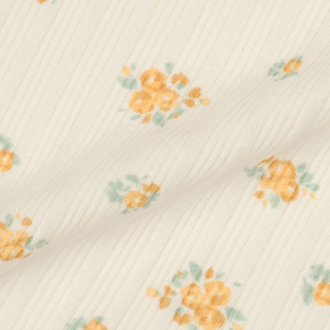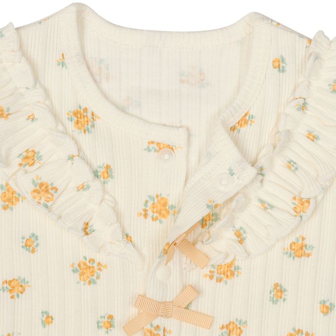 短袖有機棉兔裝-蝴蝶結、小花-米白色