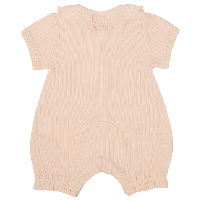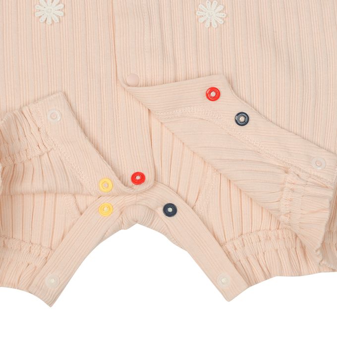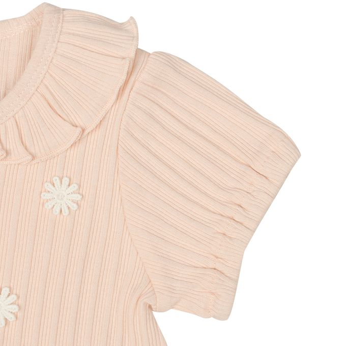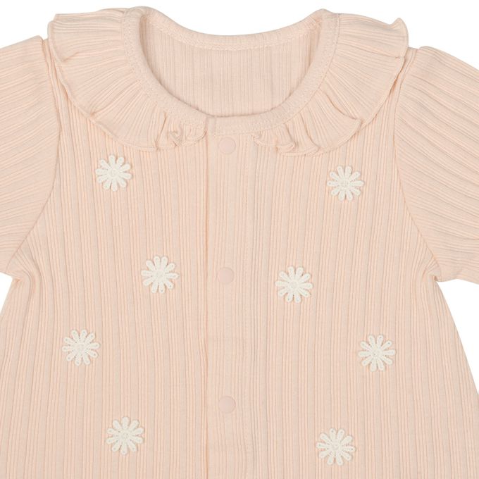 短袖有機棉兔裝-蝴蝶結、小花-粉紅色