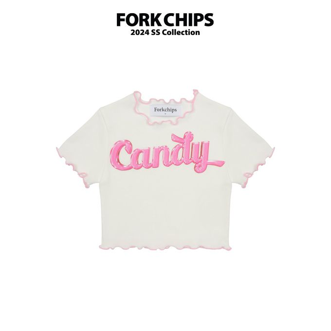 韓國 FORK CHIPS - Candy木耳邊短袖上衣-白