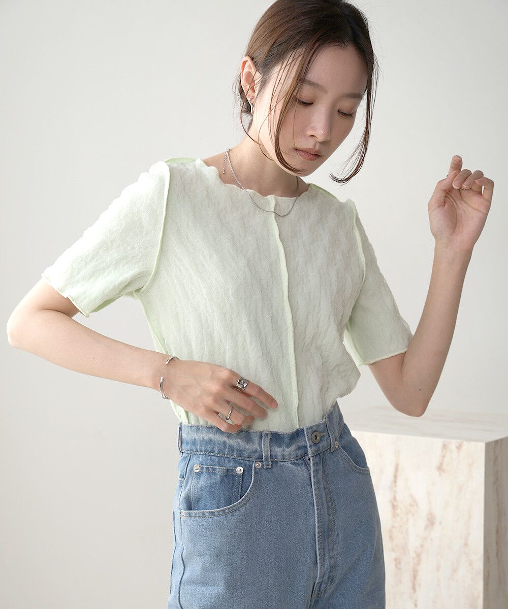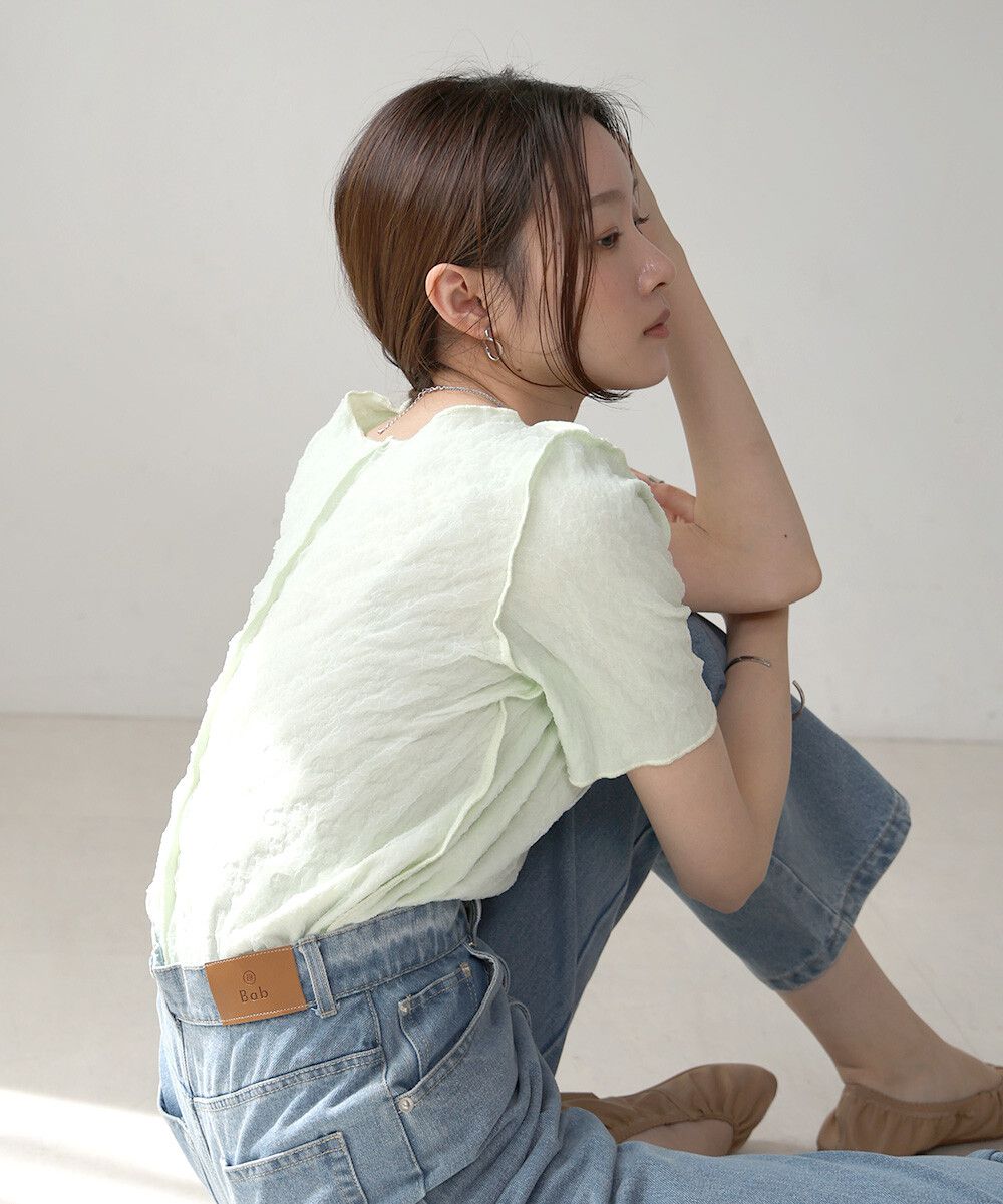 前後穿清爽皺褶短袖上衣