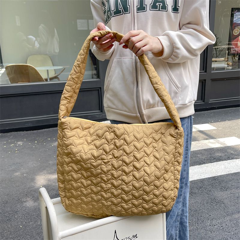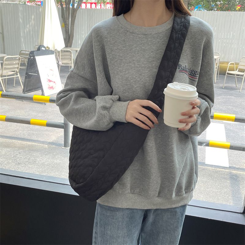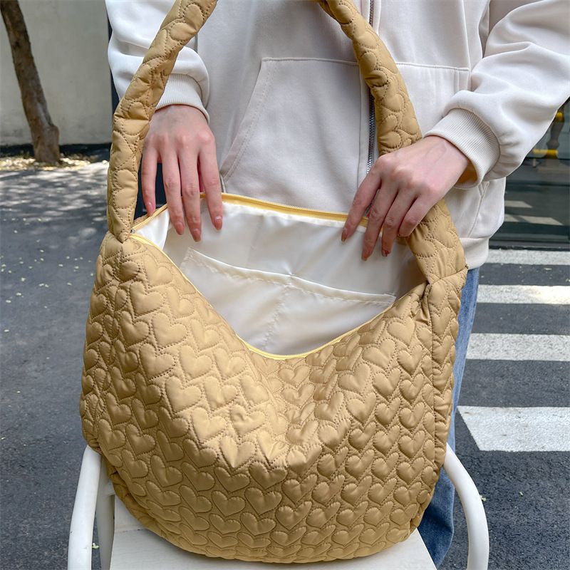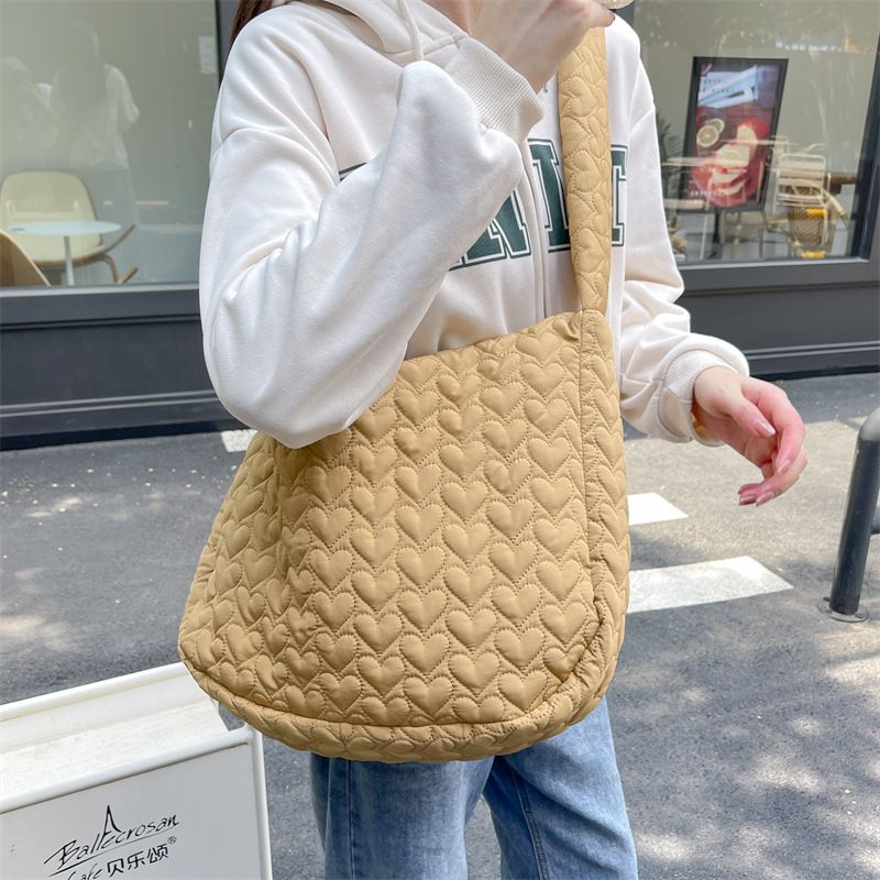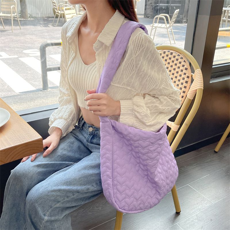 輕量百搭側背包/肩背包-愛心絎縫-粉色 (40x34x9cm)