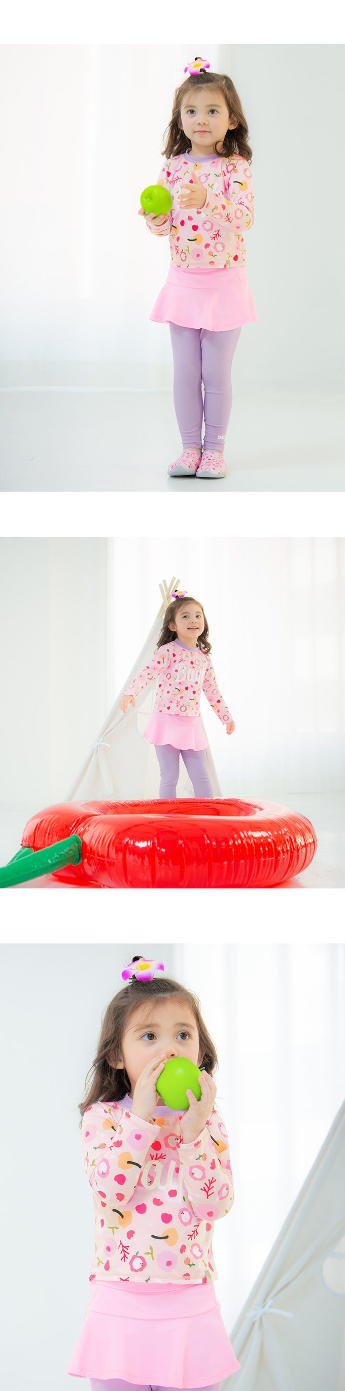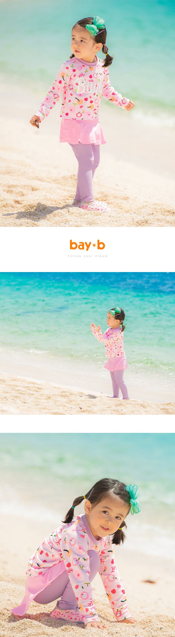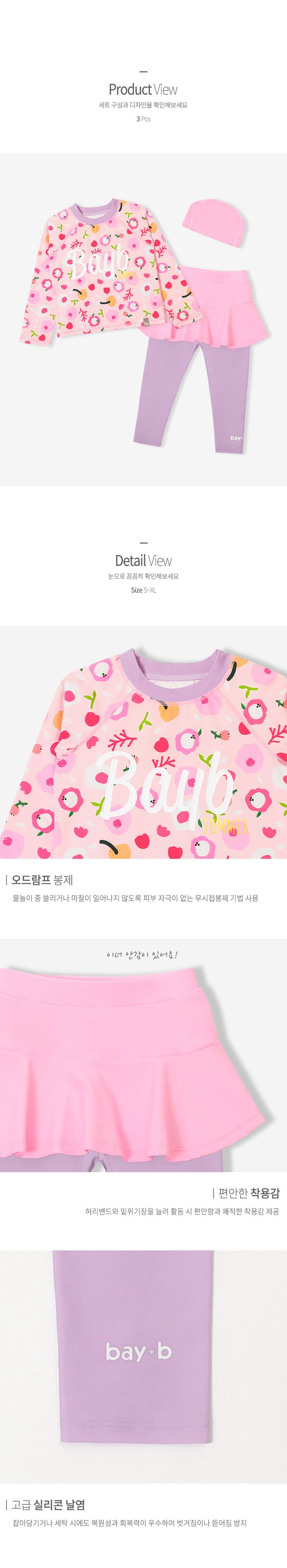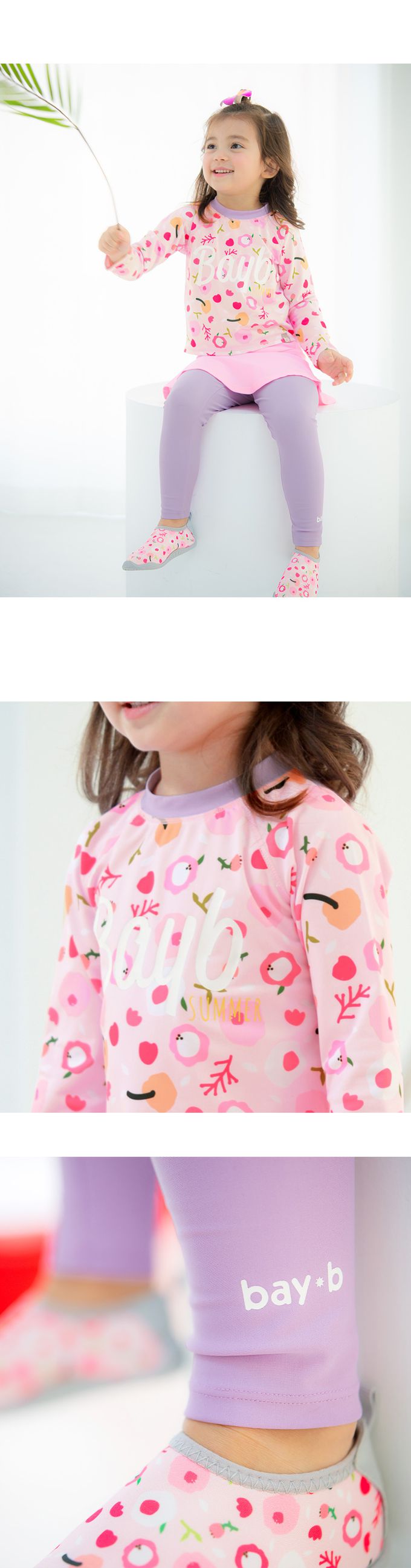 韓國 BAY-B - (含泳帽)UPF 50+兩件式長袖長褲泳裝-塗鴉花朵-粉X紫