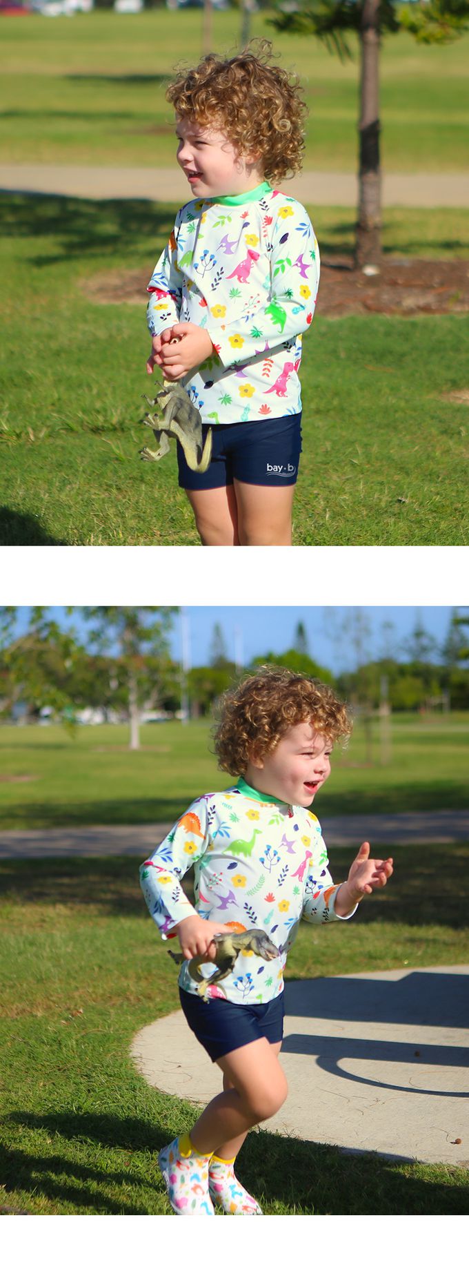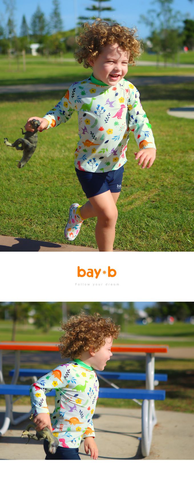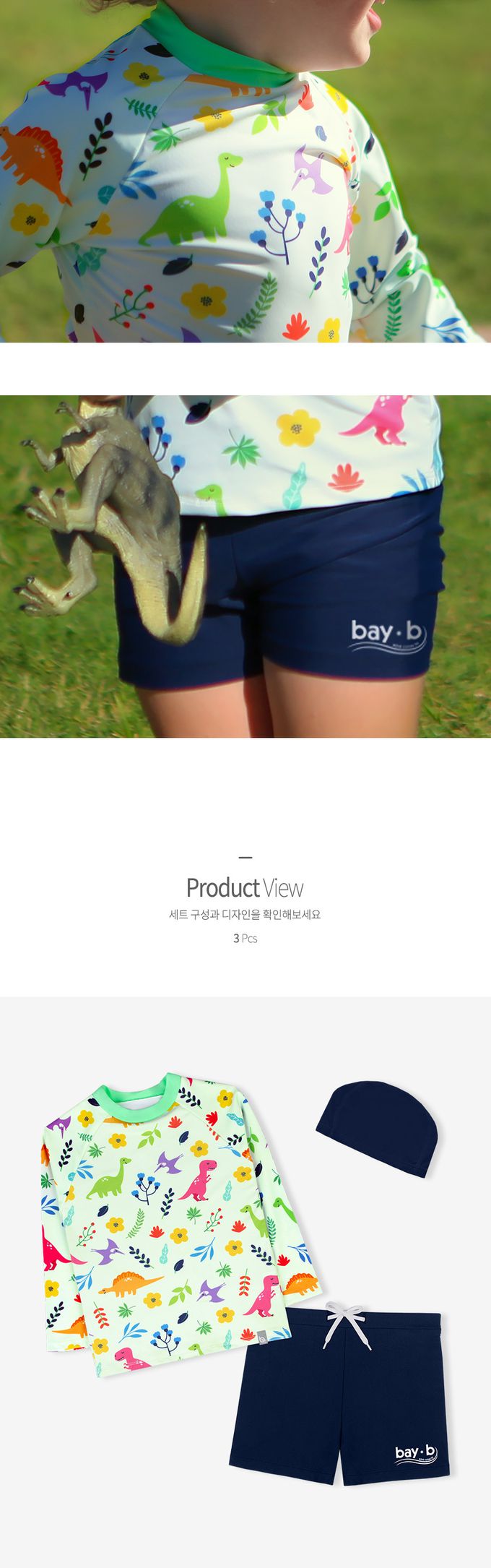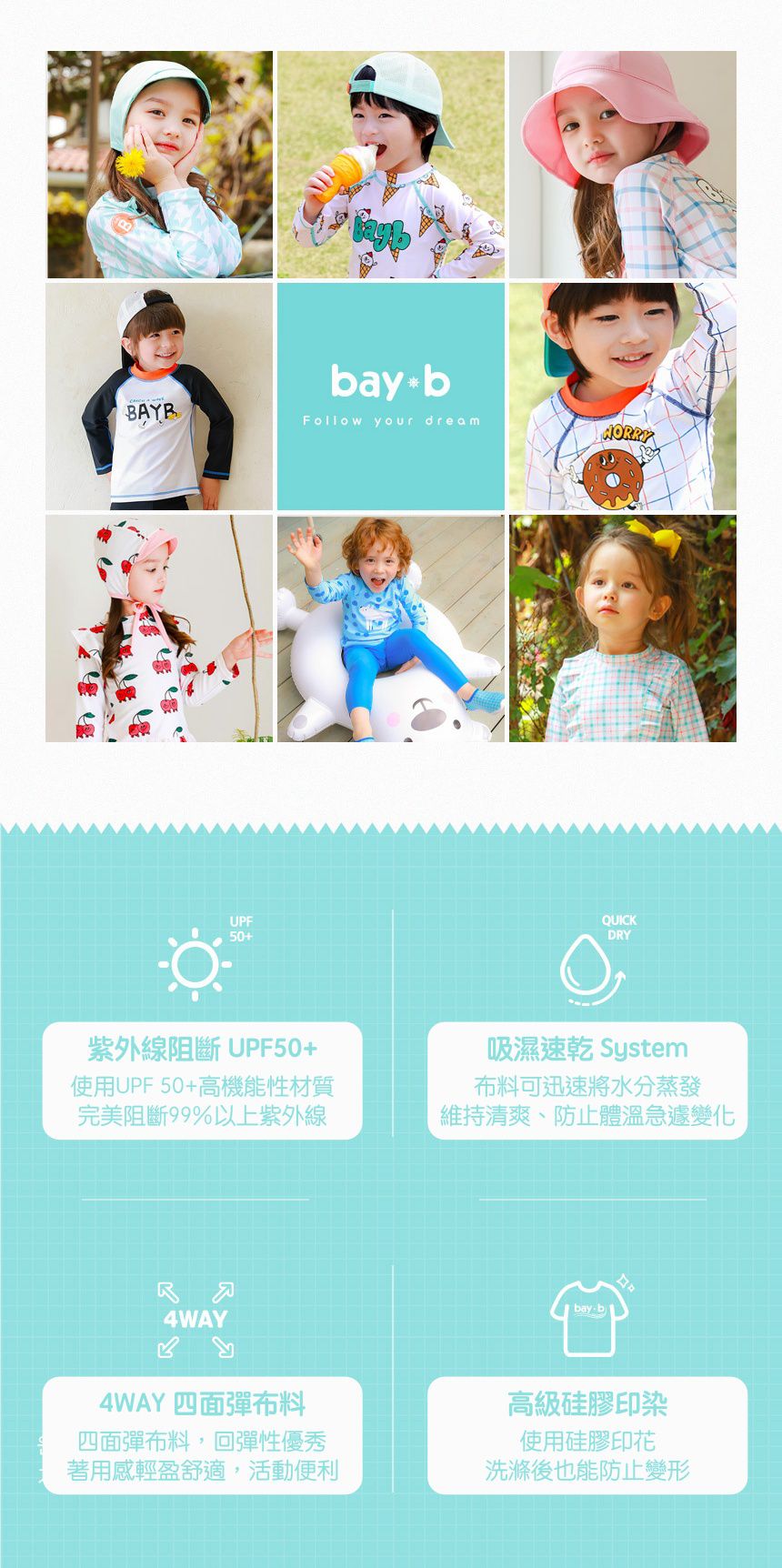 韓國 BAY-B - (含泳帽)UPF 50+兩件式泳裝-鯊魚-藍X海軍藍