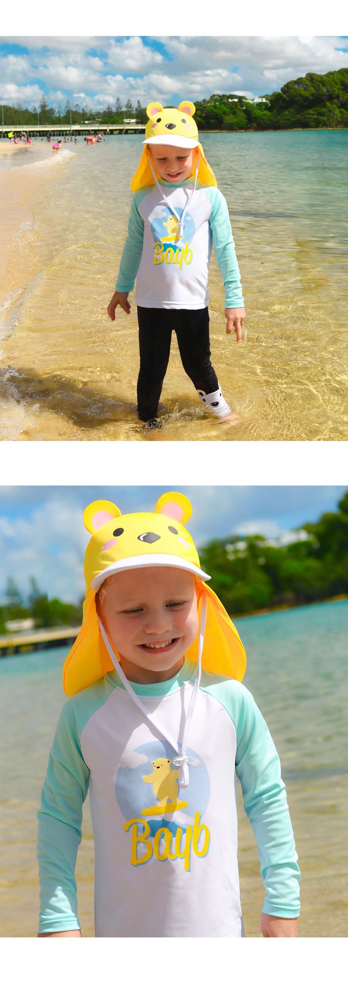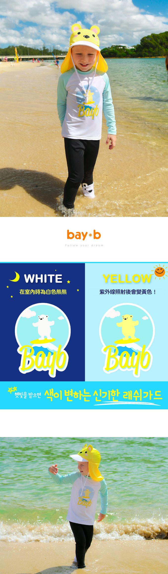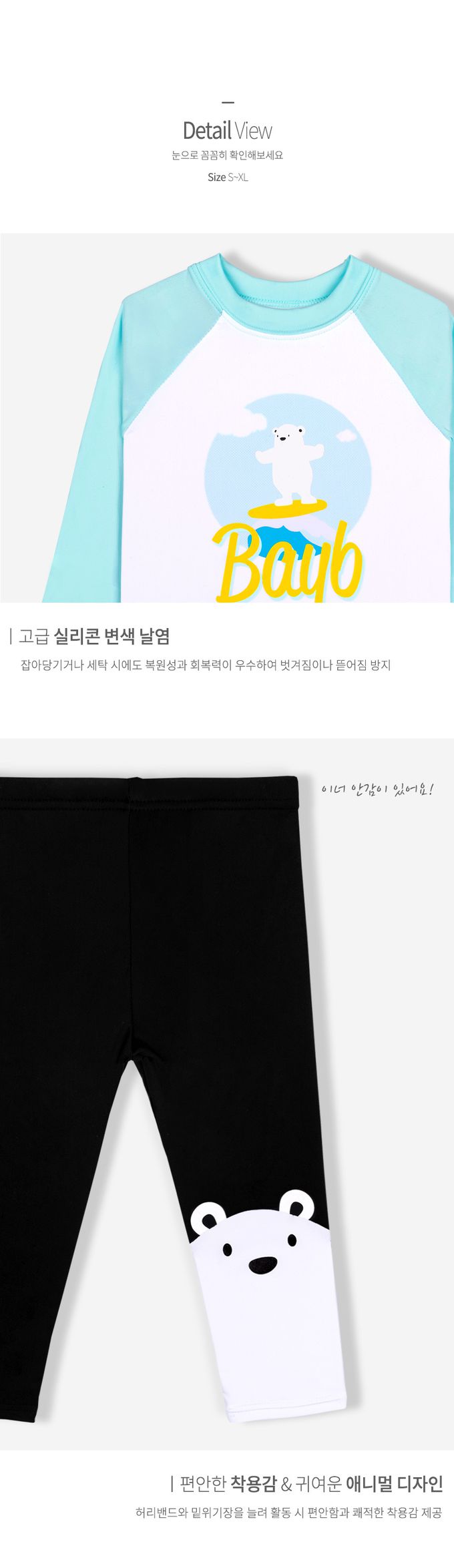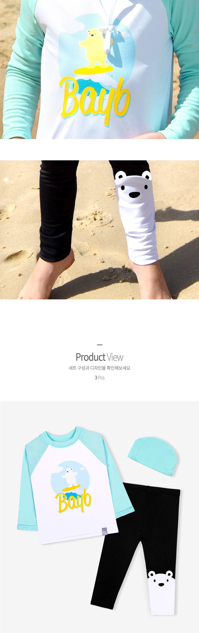 韓國 BAY-B - (含泳帽)UPF 50+兩件式長袖長褲泳裝-衝浪熊熊-湖綠