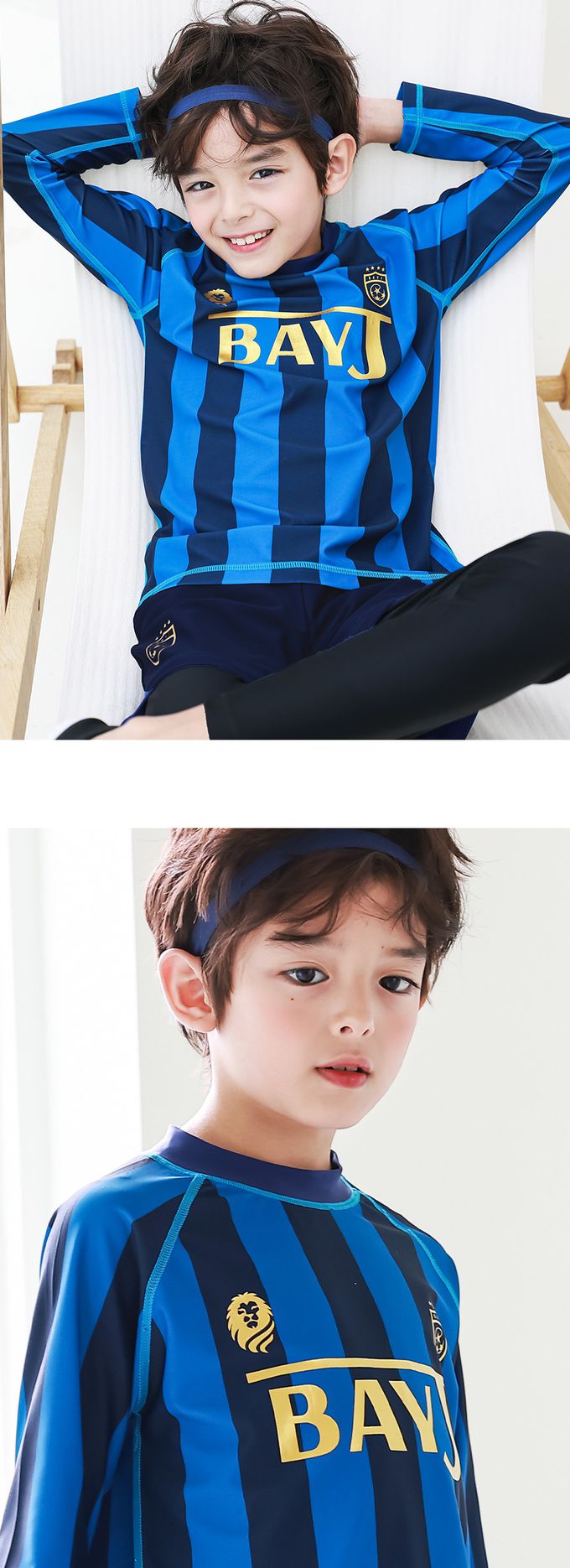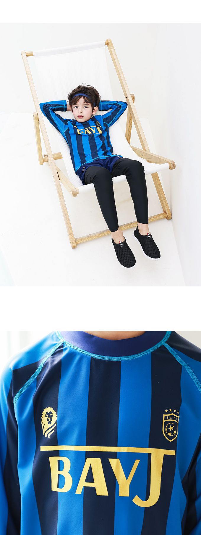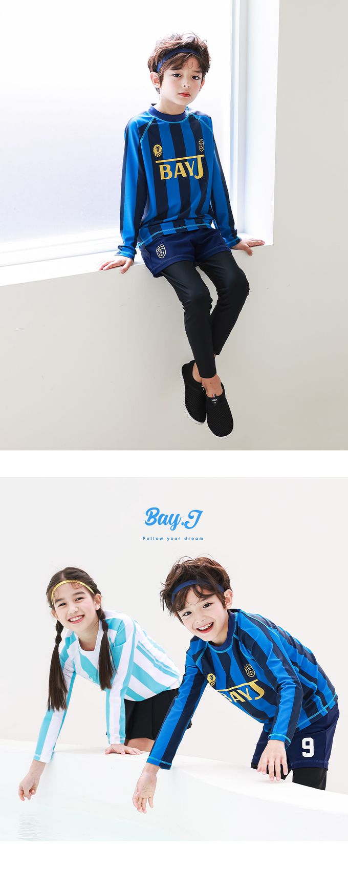 韓國 BAY-J - UPF 50+兩件式長袖長褲泳裝-直紋9-藍X深藍