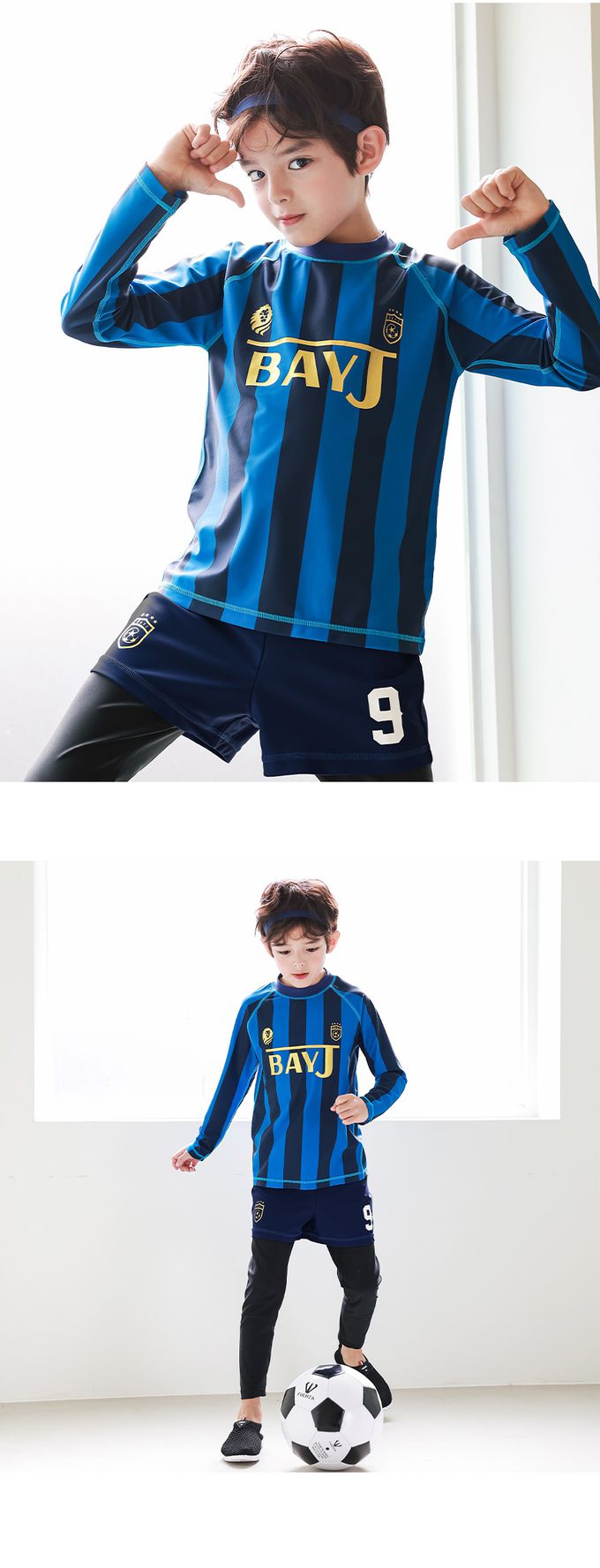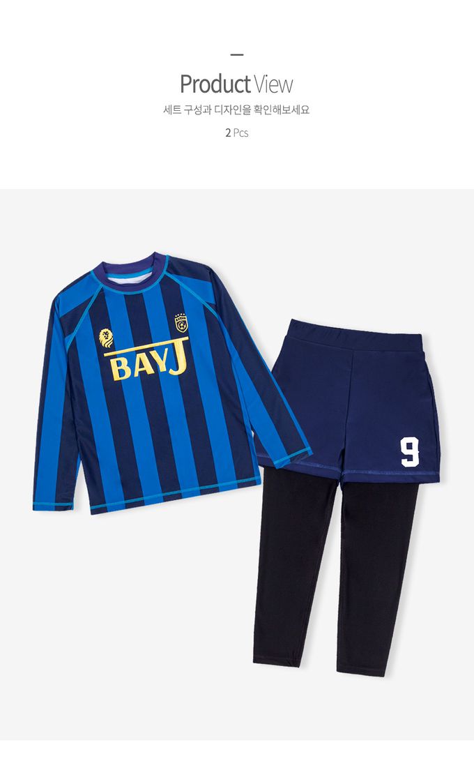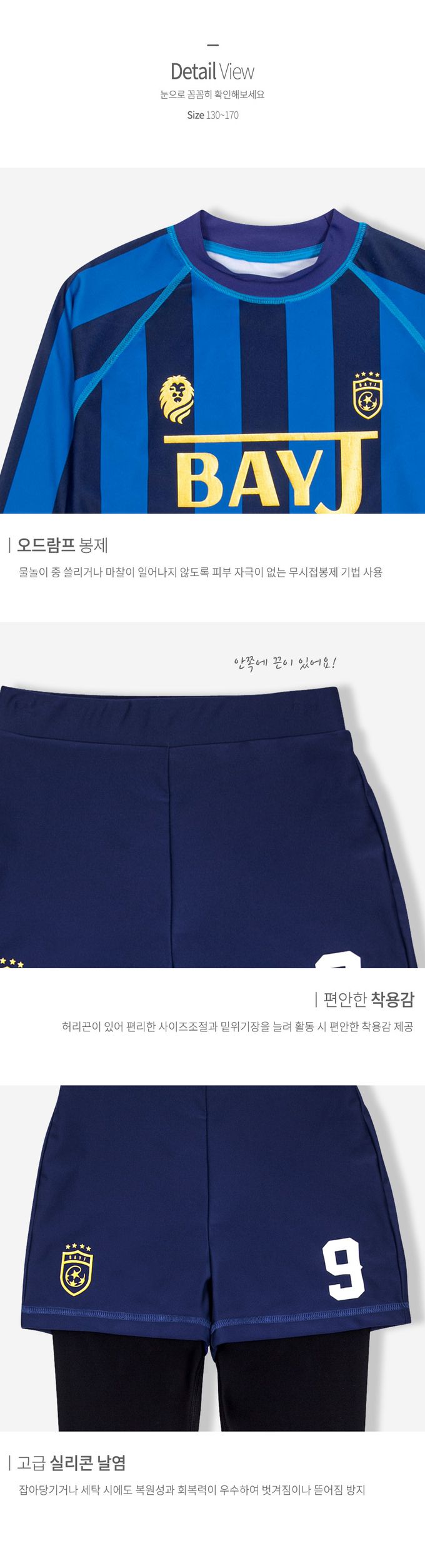 韓國 BAY-J - UPF 50+兩件式長袖長褲泳裝-直紋9-藍X深藍