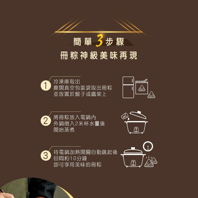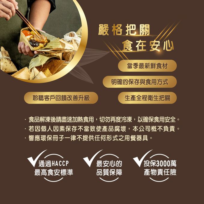 成分:長糯米、豬肉、鹹蛋黃、珠貝、香菇、栗子、菜脯、金鉤蝦、味精、醬油、胡椒粉、白糖、米酒、麻油、水