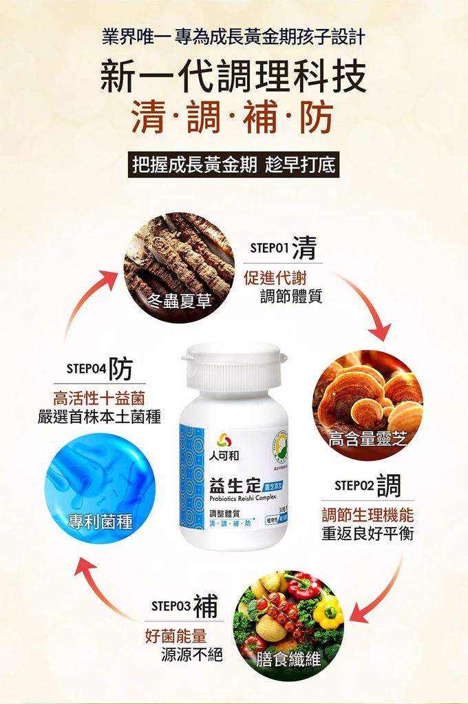 品名:【人可和】益生定-靈芝添加(30粒/瓶)-成長黃金期調理體質