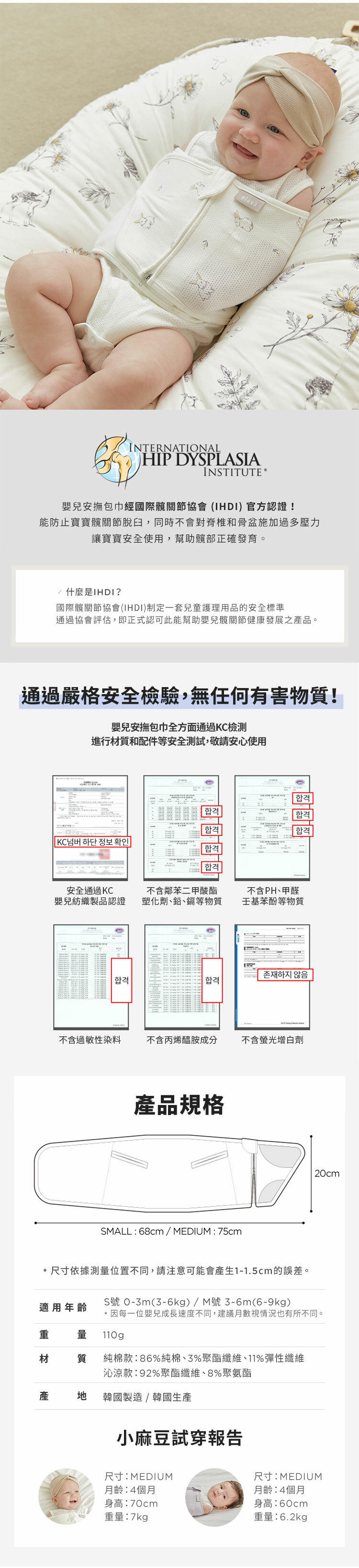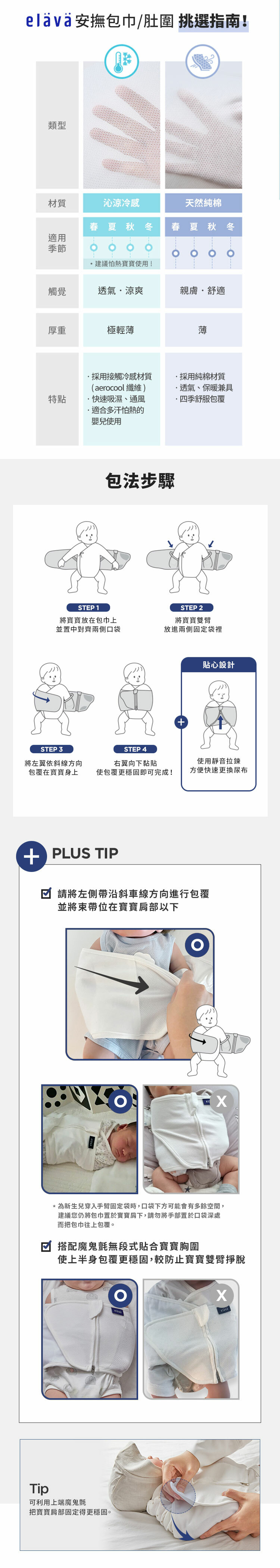- 當嬰兒開始有翻身跡象時,須停止包覆雙臂,可轉換【肚圍】使用。