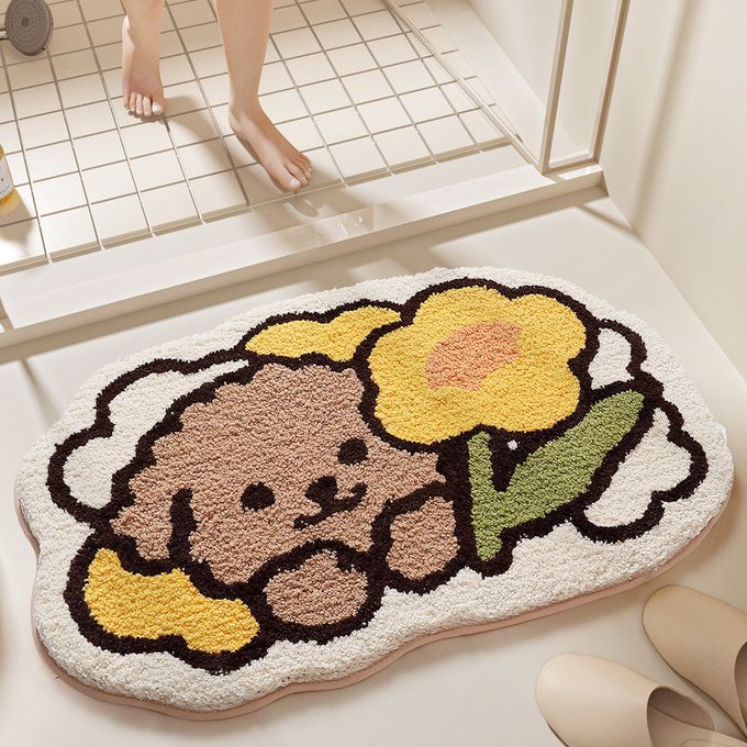 快速吸水植絨浴室腳踏墊-可愛花貓