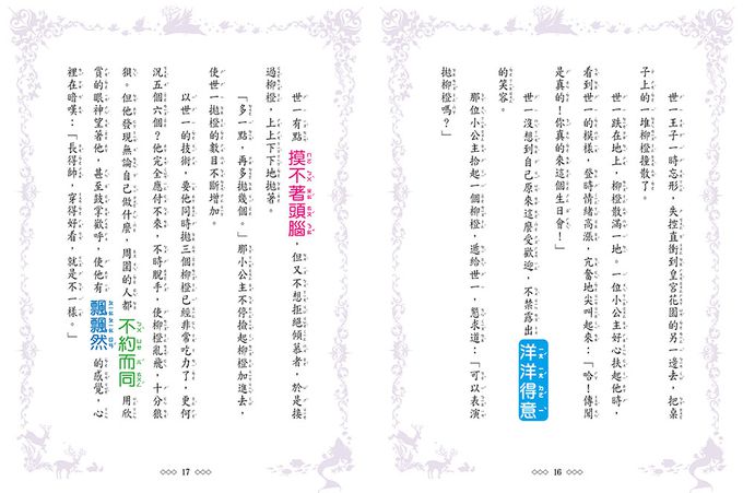 有注音,文字量不少,但因為字有稍大,加上可愛的插圖,所以其實很容易閱讀。每本書都附贈角色貼紙、明信片、成語魔咒簿等贈品,從拆開書就充滿驚喜!」