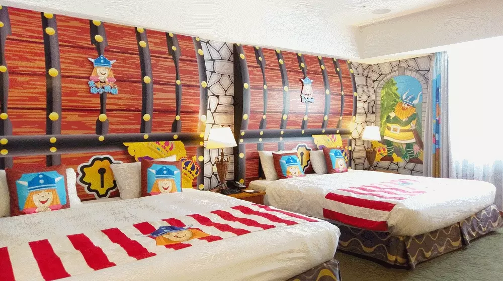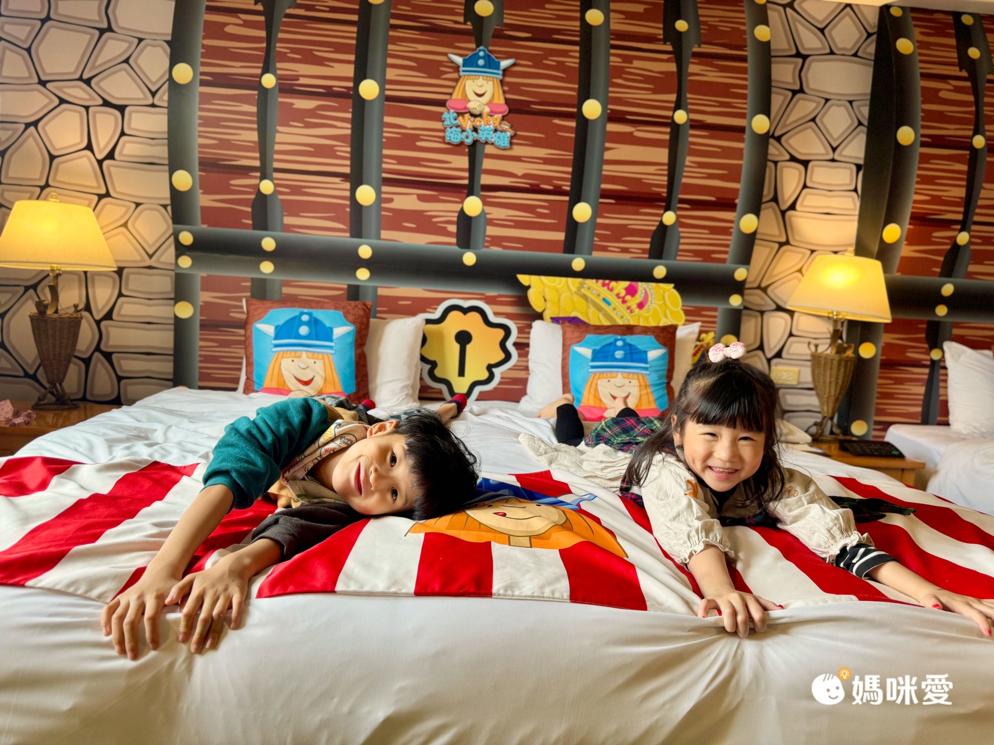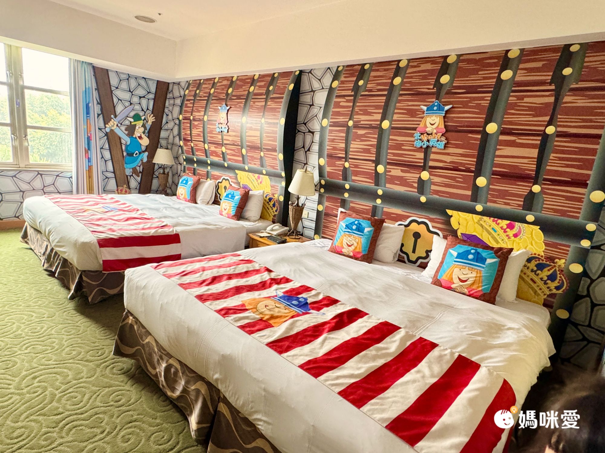 超級適合親子的「大放電」兩天一夜旅行,不僅飯店內就有超豐富的兒童設施可玩,還送樂園門票兩張!這次入住的是四人房(一大床兩小床),空間非常夠一家人入住!還可加價升等爸媽們的童年回憶「北海小英雄小威主題房」!
