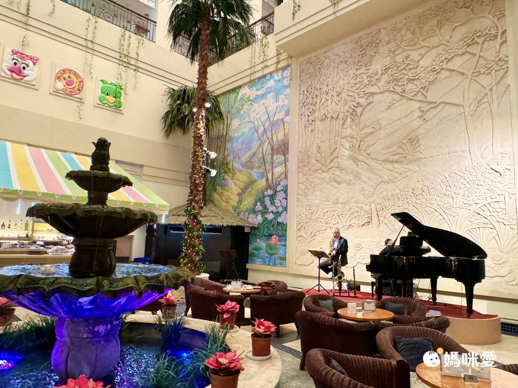大廳旁邊的中庭酒吧,裝潢是優雅的南洋風,庭內雨林造景,搭配音樂伴奏,在這裡喝杯咖啡好愜意!